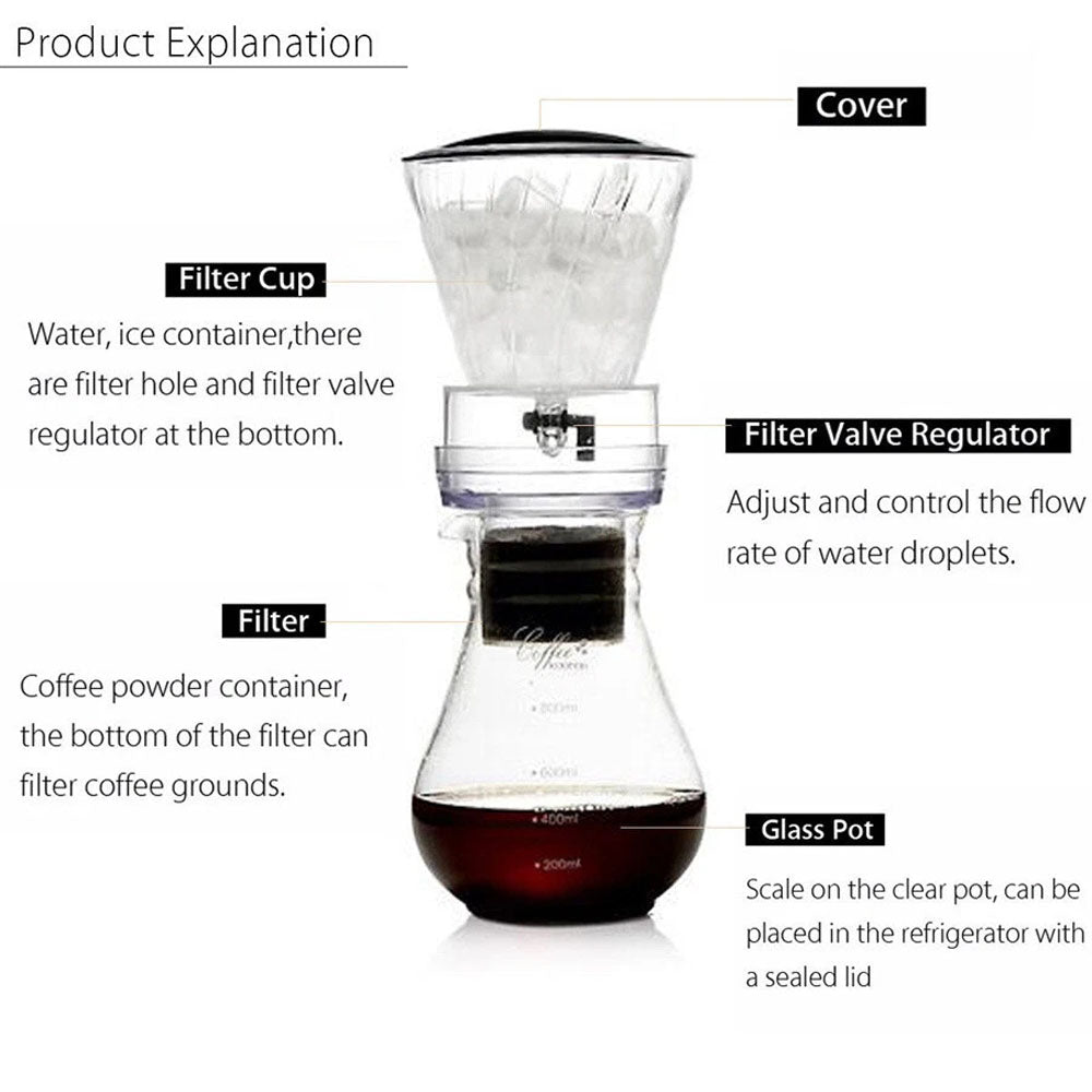 800ML Glass Coffee Pot Dutch Coffee Cold Brew Ice Drip Coffee Maker