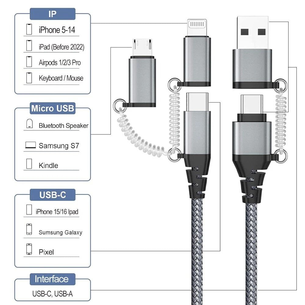 • Ideal for Various Occasions: This multi-functional fast charging and data sync cable is suitable for travel, work, and business trips. No more carrying multiple cables - it fits all your charging equipment and is easy to carry.