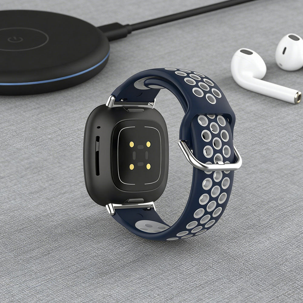 Blue & Grey Fitbit Versa 3, Versa 4 & Sense, Sense2 Watch Strap Replacement Silicone Sports Wrist Band