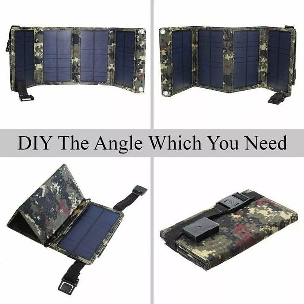 Folding Solar Panel Folding Power Bank USB Outdoor Camping Hiking Phone Charger Camouflage