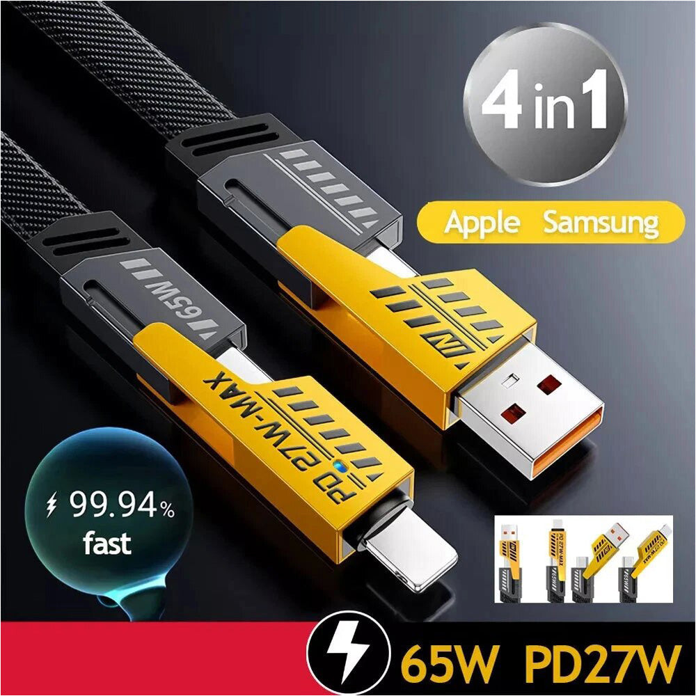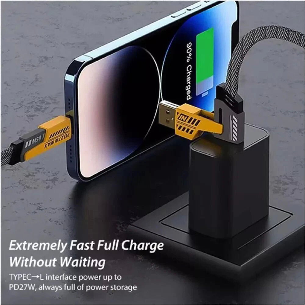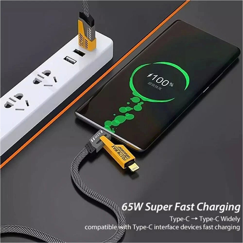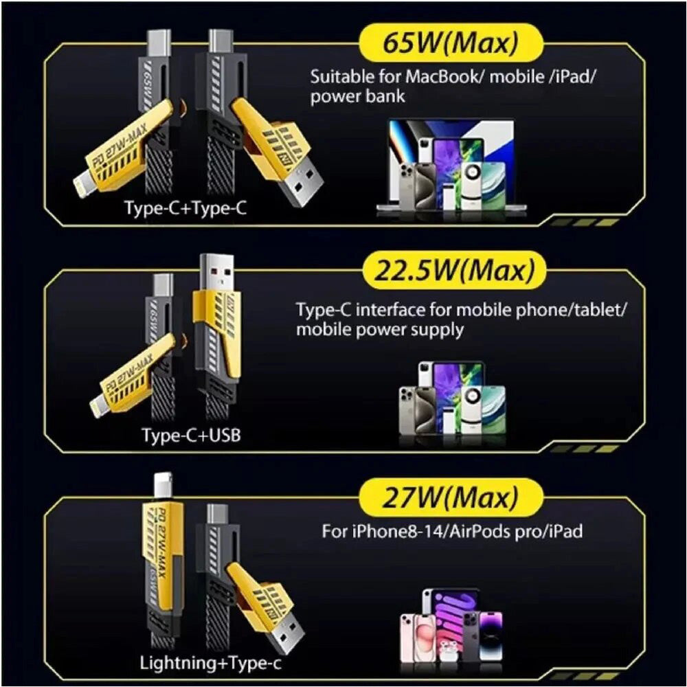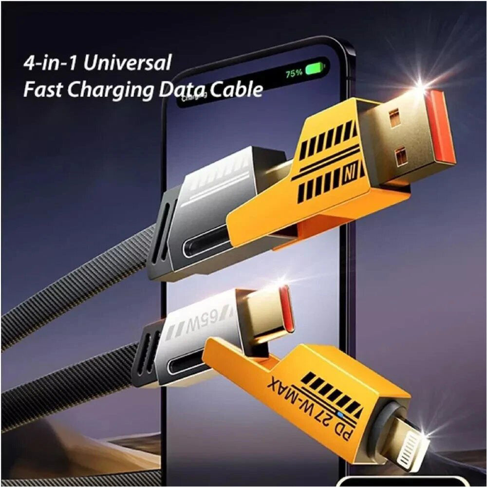 Bid farewell to cable clutter! Our 4-in-1 USB-C cable streamlines your charging routine. With a single cable that features four distinct ports, it’s designed to charge all your devices, eliminating the need for multiple chargers. Whether you’re at home, in the office, or on the go, this cable ensures your iPhone, iPad, MacBook, Android phone, and more stay powered up.