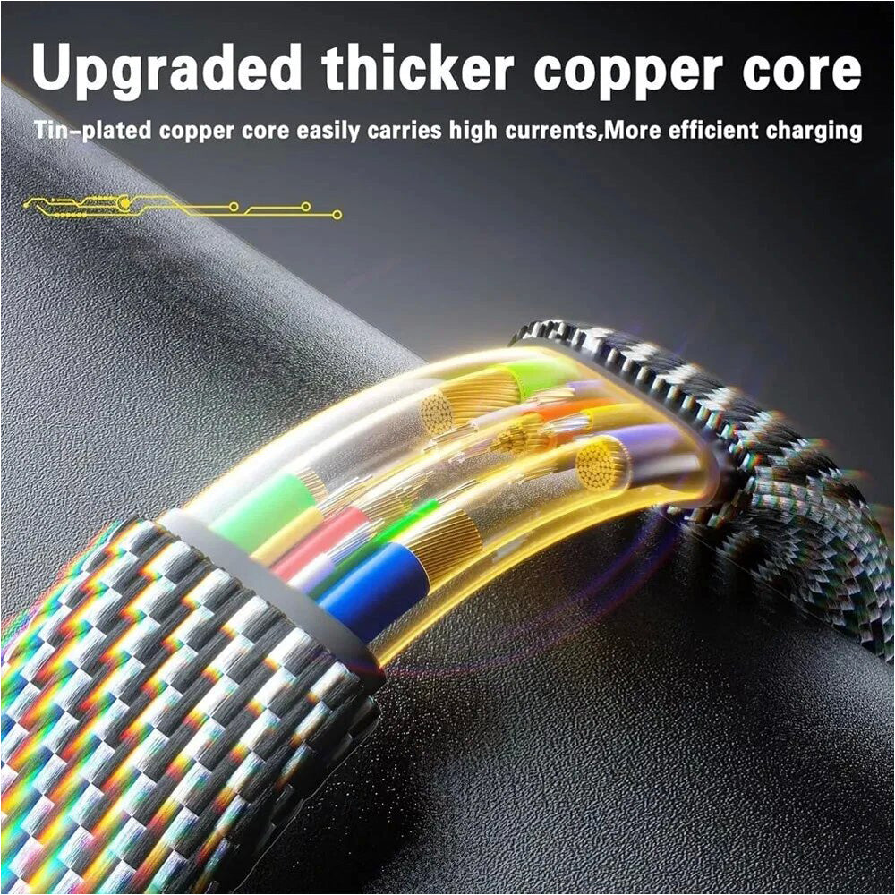 - Flat Braided Design:Constructed with flat braided nylon fiber, this cable is more flexible, durable, and tangle-free than traditional ones. The zinc alloy housing enhances sturdiness, withstanding daily wear and tear. Its tangle-free design keeps the cable organized when not in use, saving you time and effort.