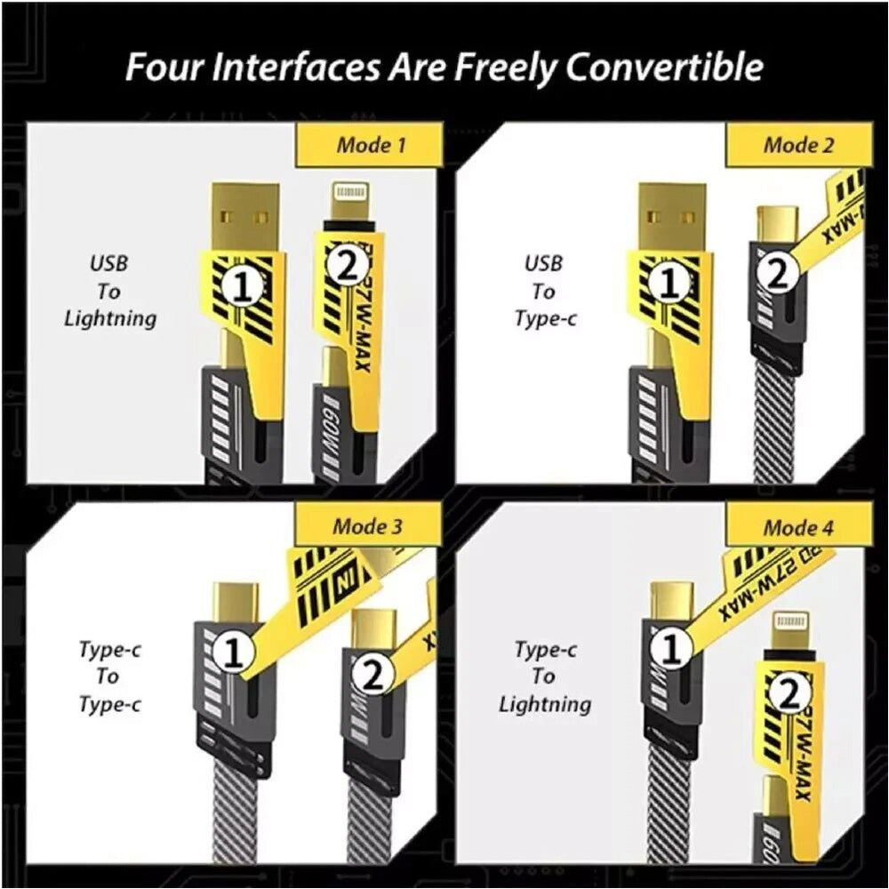 - 4-in-1 Multi Charging Cable for All Devices:Simplify your charging setup with four integrated ports: USB C to L, USB C to USB C, USB A to USB C, and USB A to L. Charge and sync various devices without the hassle of switching cables.
