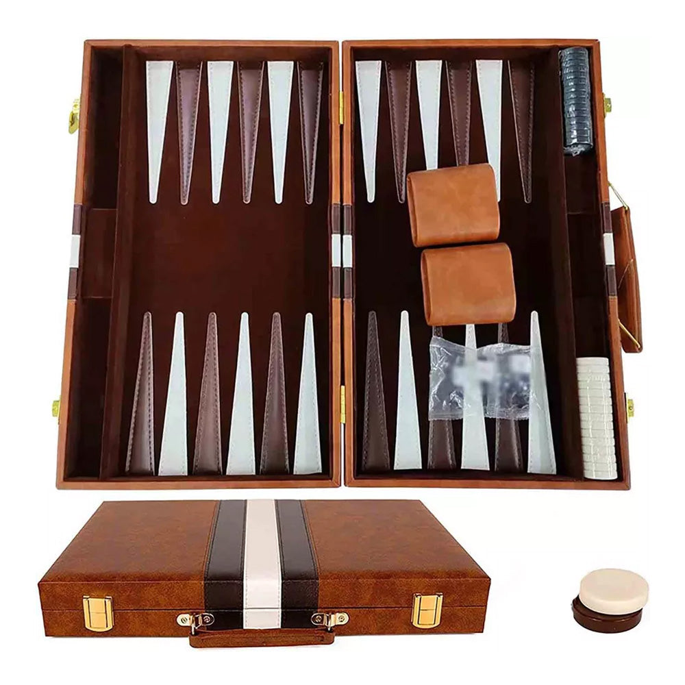 19" Premium Leather Backgammon Board Game Set for Adults Kids Classic Game Play