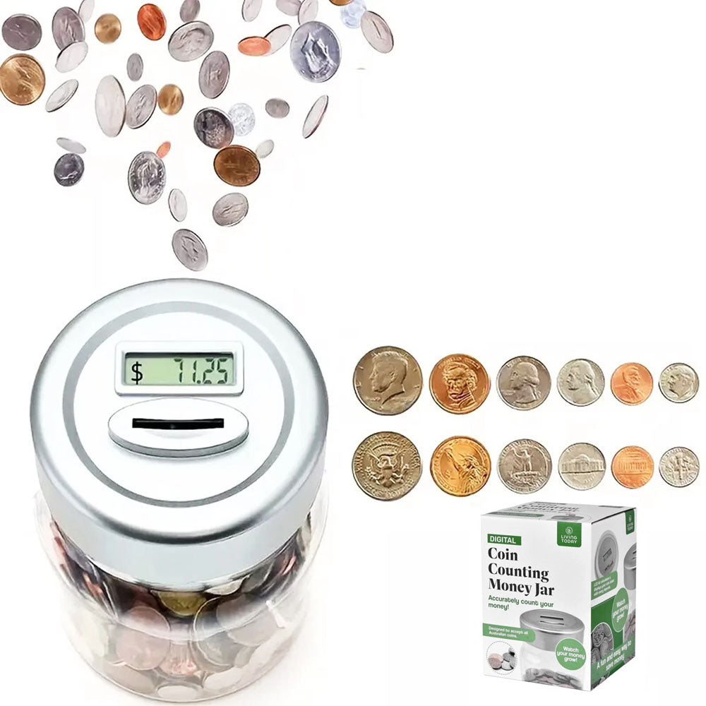 Coin Money Counting Jar Digital LCD Display OZ Coins Piggy Bank Box Gift