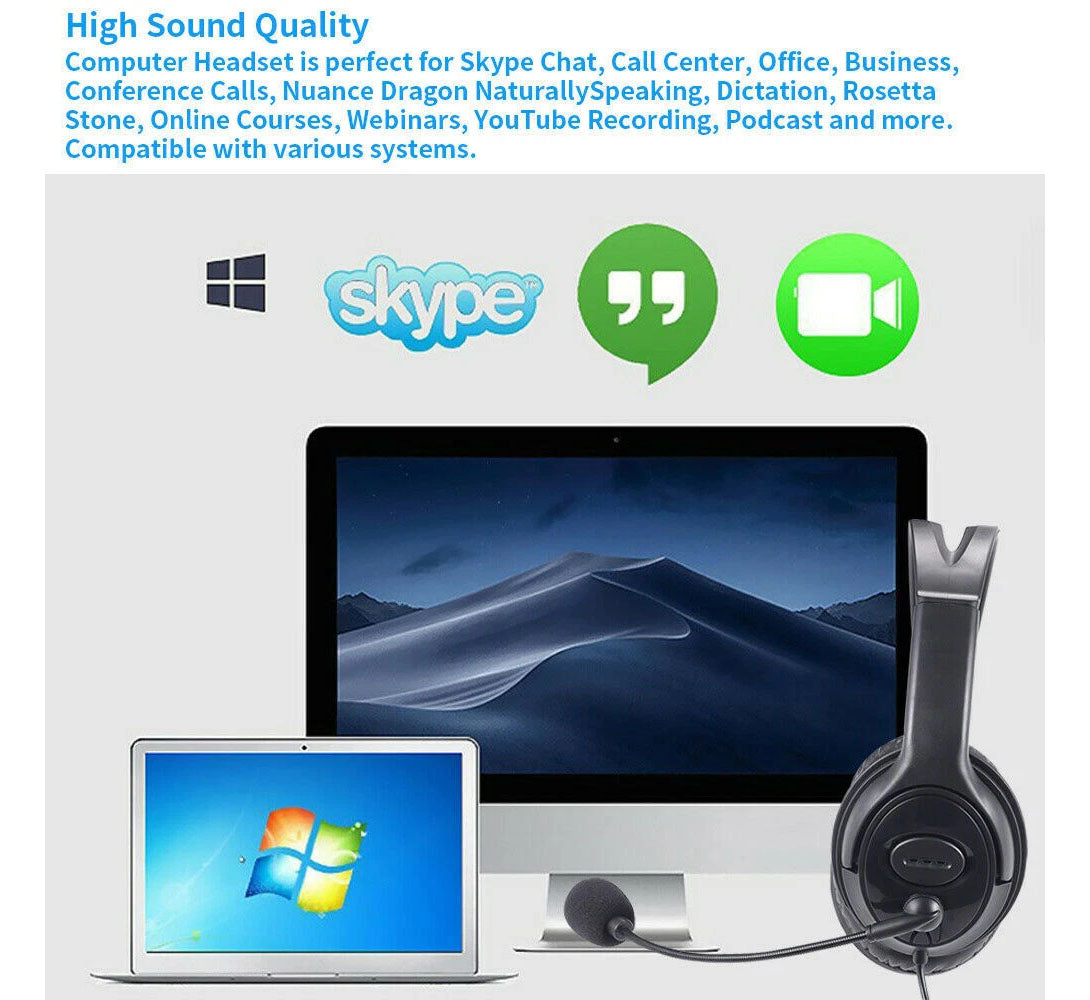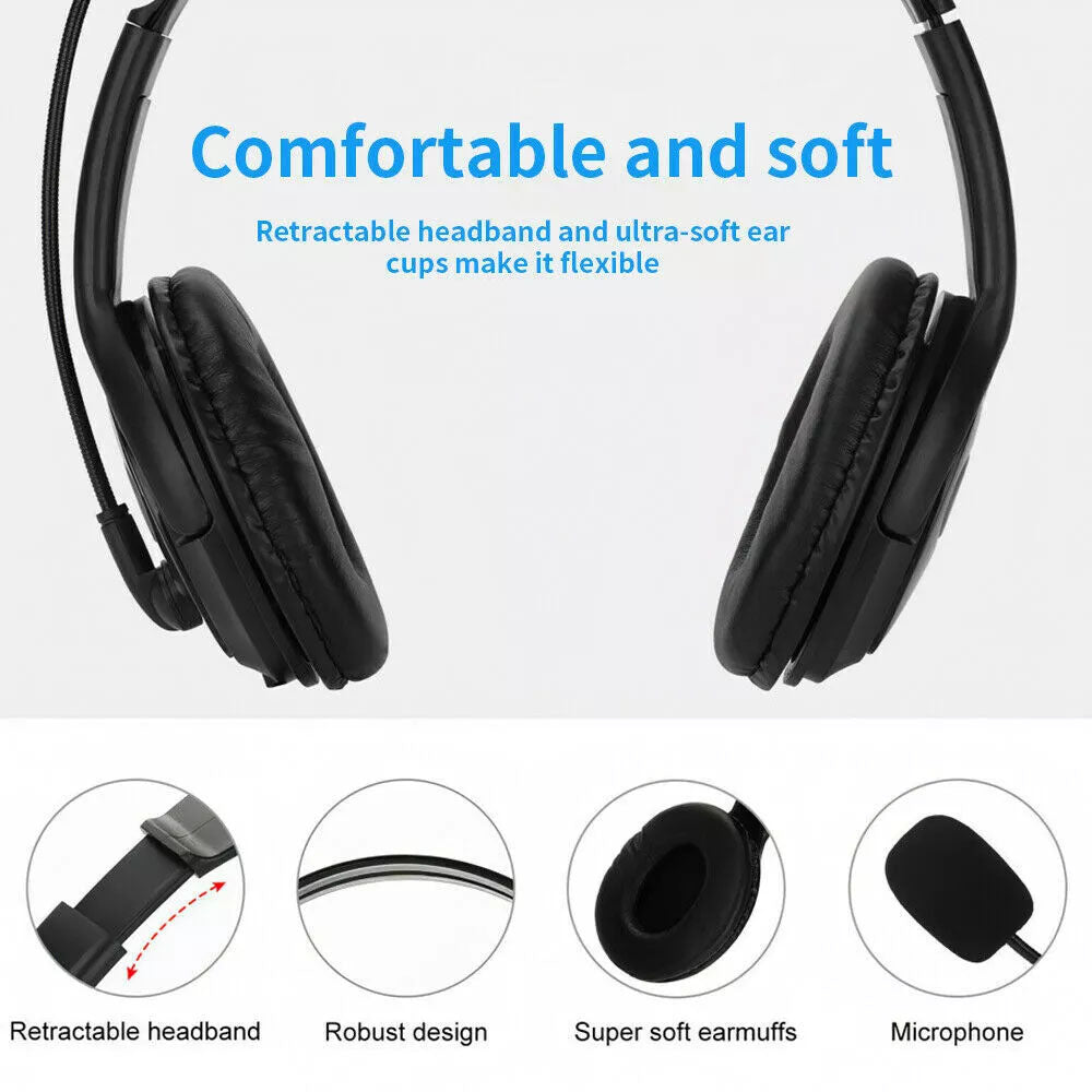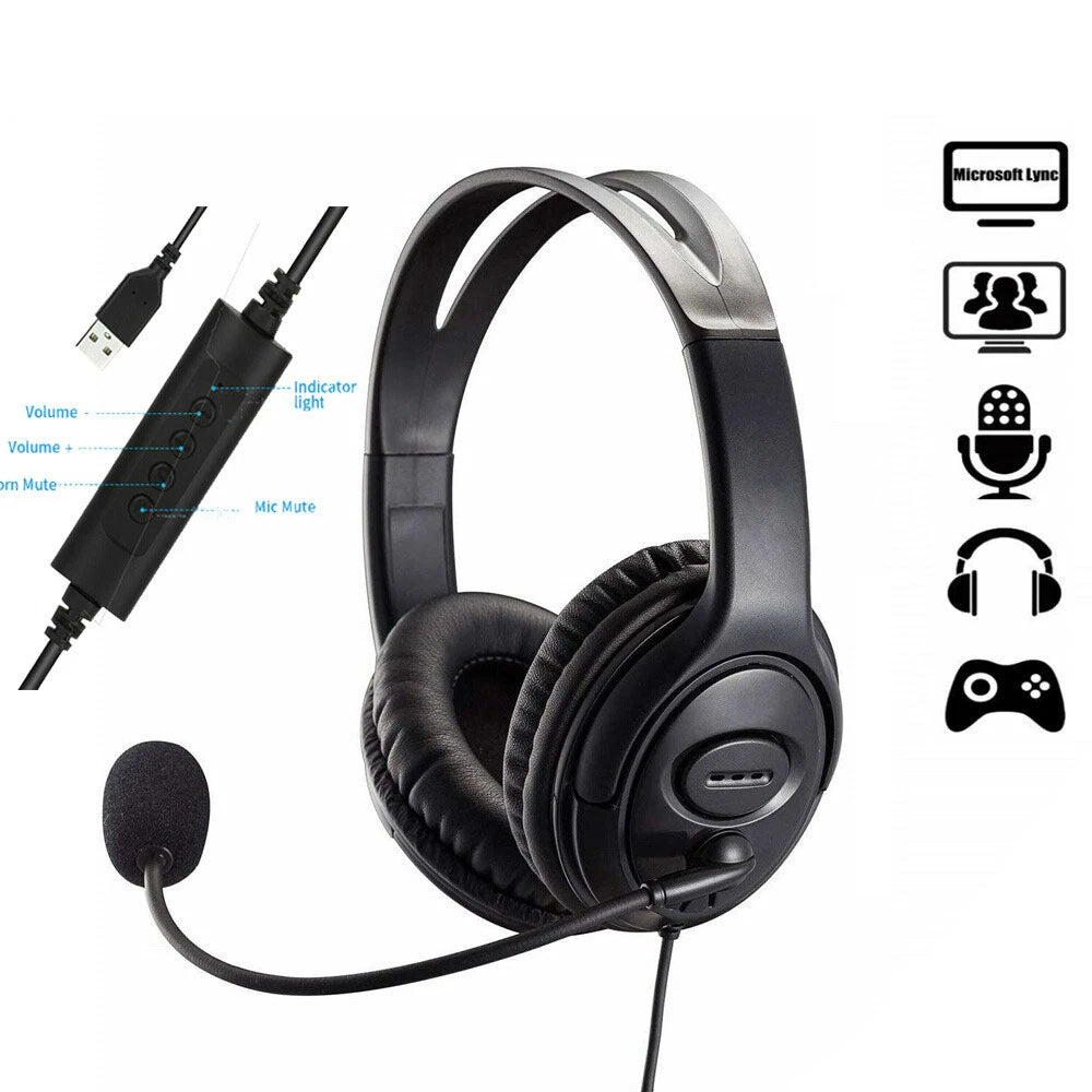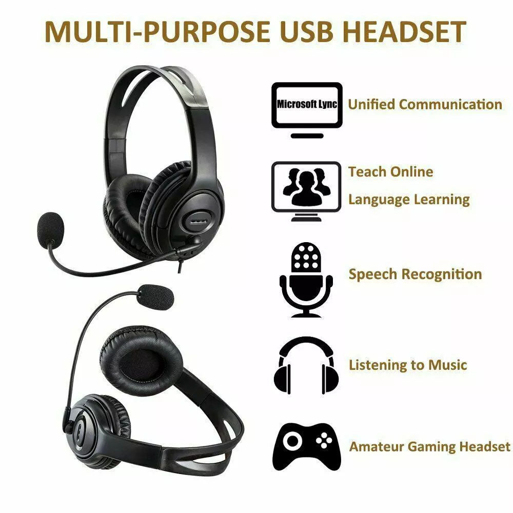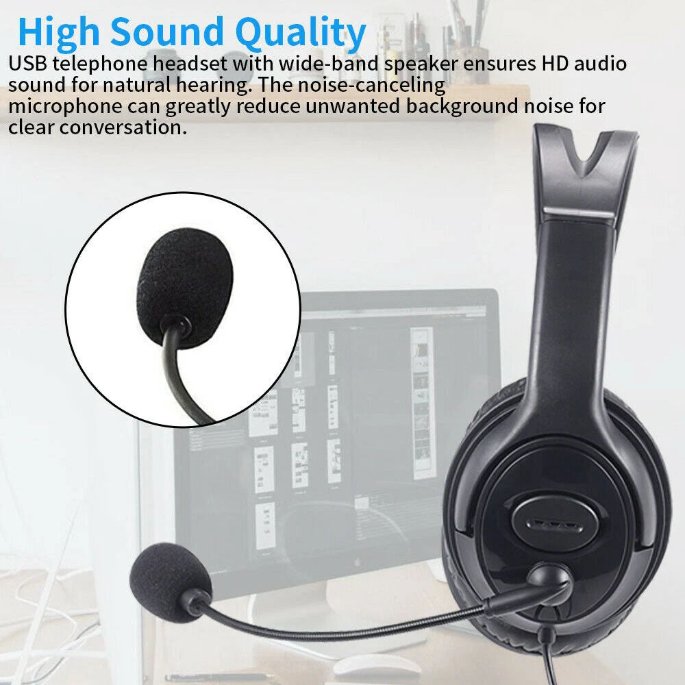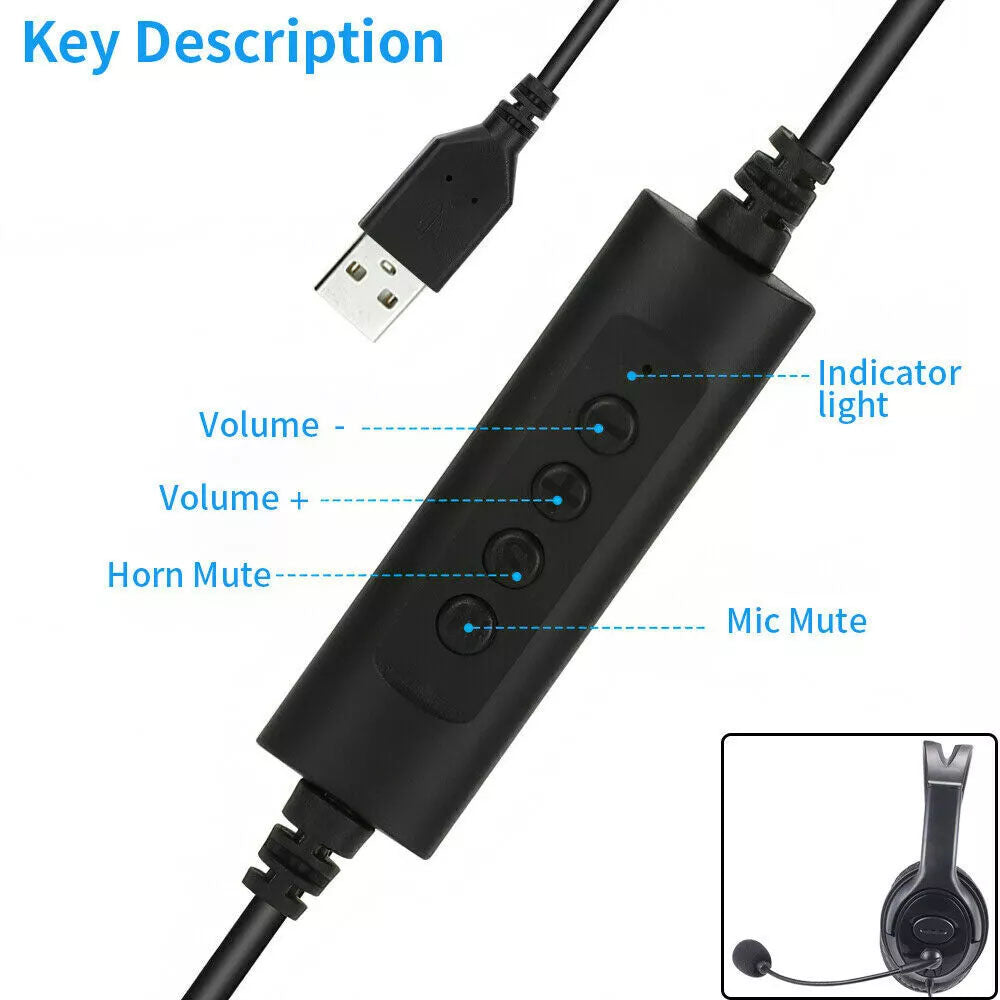 USB Wired Headphone Headset Noise Cancelling With Microphone For Computer Laptop