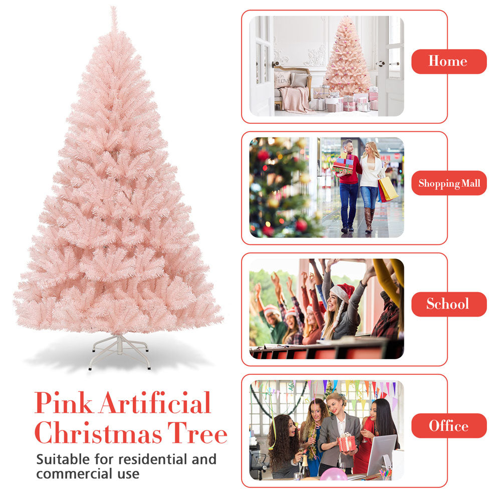 Celebrate the festive season with a unique touch! This  Pink Artificial Christmas Tree brings a fresh, enchanting twist to your holiday décor with its eye-catching soft pink color. Perfect for adding a whimsical flair to any space, this tree is ideal for homes, offices, shops, apartments, or anywhere you want to spread the joy of Christmas. Made from environmentally friendly PVC material and supported by a sturdy metal stand, this tree is built to last for multiple seasons. Its 3-hinged design makes assembly quick and easy, saving you time and energy. Whether you're decorating indoors or outdoors, this vibrant tree provides ample space for your creativity to shine, and its dense branch tips give it a realistic, full-bodied look.