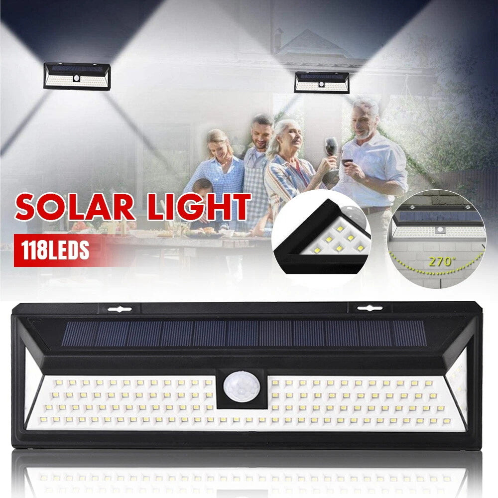 2 pcs 118 LED Solar Motion Sensor Light Outdoor Garden Security Lamp Floodlight