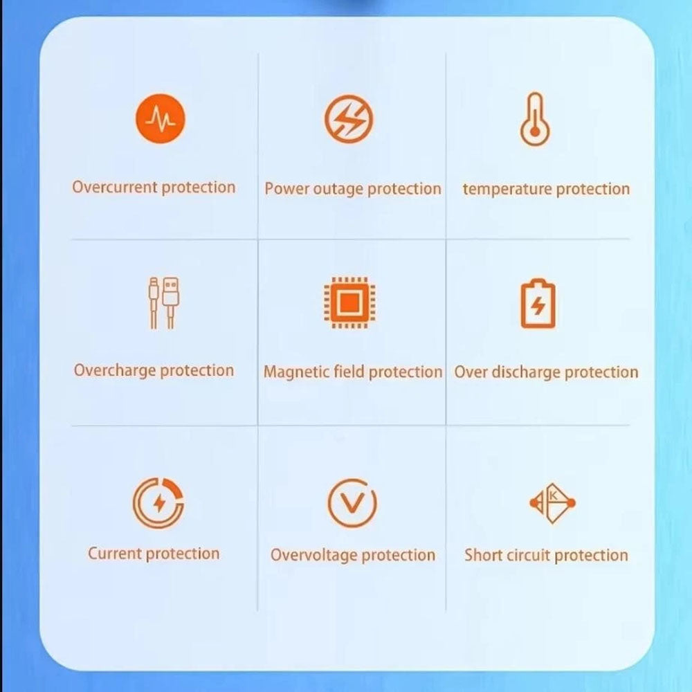 • Safe Charging: Features advanced protection mechanisms to safeguard against overcharging, overheating, and short circuits, keeping both your devices and the power bank safe.