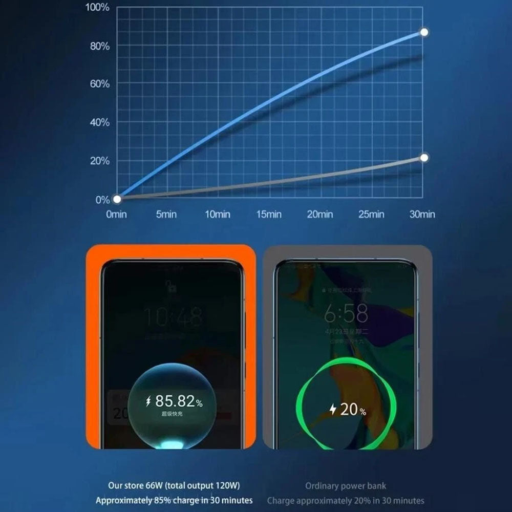 Stay charged no matter where you go with this powerful 120W Fast Charging 20000mAh Power Bank! With a massive capacity and ultra-fast charging speed, it’s the ideal solution for keeping your devices powered during travel, work, or on the go. Whether you're at home, on a commute, or traveling, this portable charger offers universal compatibility with a wide range of smartphones, tablets, and other USB-powered devices.