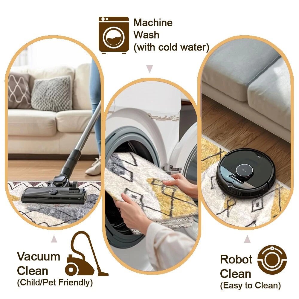• Uncompromising Safety: Your family’s safety is our top priority. Equipped with a premium TPR non - slip backing, dotted with thousands of micro - grip protrusions, the rug stays firmly in place on smooth floors. It effectively prevents slips and trips, making high - traffic areas a secure space for kids’ laughter, elders’ strolls, and pets’ play.