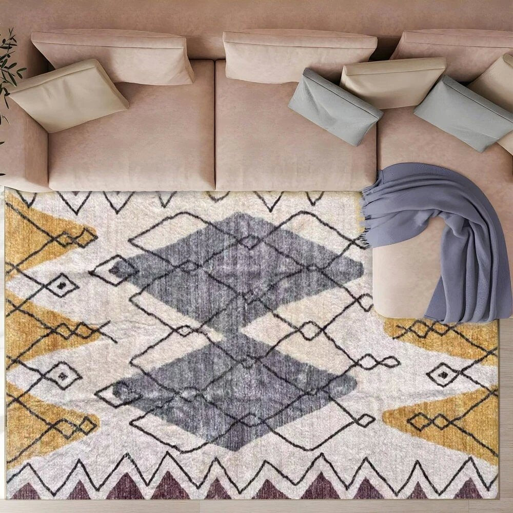 Revitalize your living space with this Modern Abstract Area Rug, seamlessly blending stylish charm and practical functionality. Featuring a modern abstract pattern in warm yellow and muted gray, it acts like a “cozy - vibe filter” for your home. In the bedroom, it’s a gentle embrace for your feet in the morning, with the warm yellow dispelling drowsiness like the rising sun. In the living room, it sets a soothing backdrop for gatherings, where the gray tone cultivates a relaxed atmosphere. Every inch of your home, adorned with this harmonious yellow - gray fusion, balances beauty and convenience, turning daily life into a warm, picturesque poem.