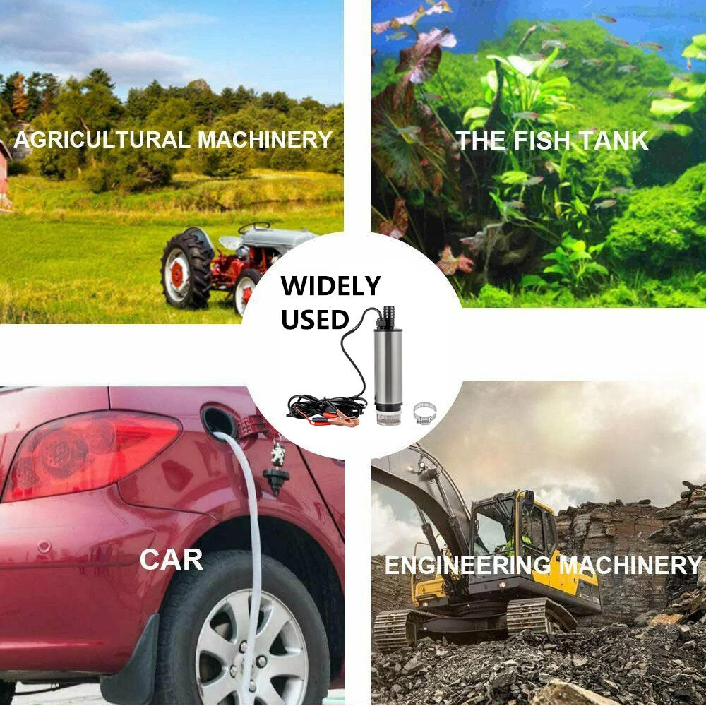 12V Aluminium Diesel Fuel Pump Submersible Transfer Vessel Water Oil Car Auto AU