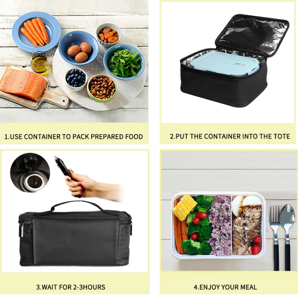 The Portable 12V Mini Oven Lunch Bag is designed to bring warm, home-cooked meals anywhere your day takes you. It works as both a slow cooker and a food warmer, capable of cooking raw food or gently reheating leftovers without drying them out or burning.