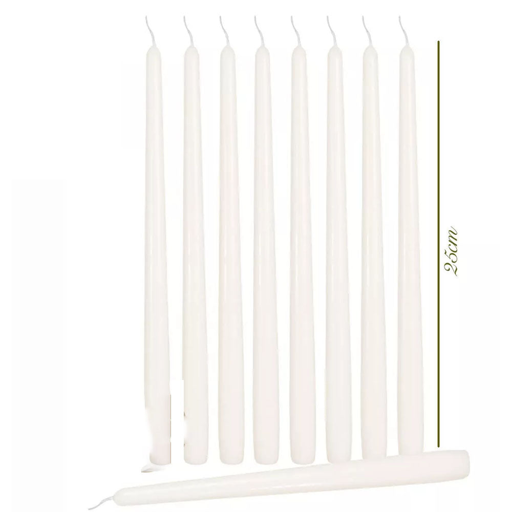 16pk Tapered Dinner Candles 25cm Tall White Unscented Taper Wedding Candle
