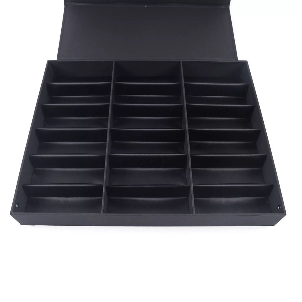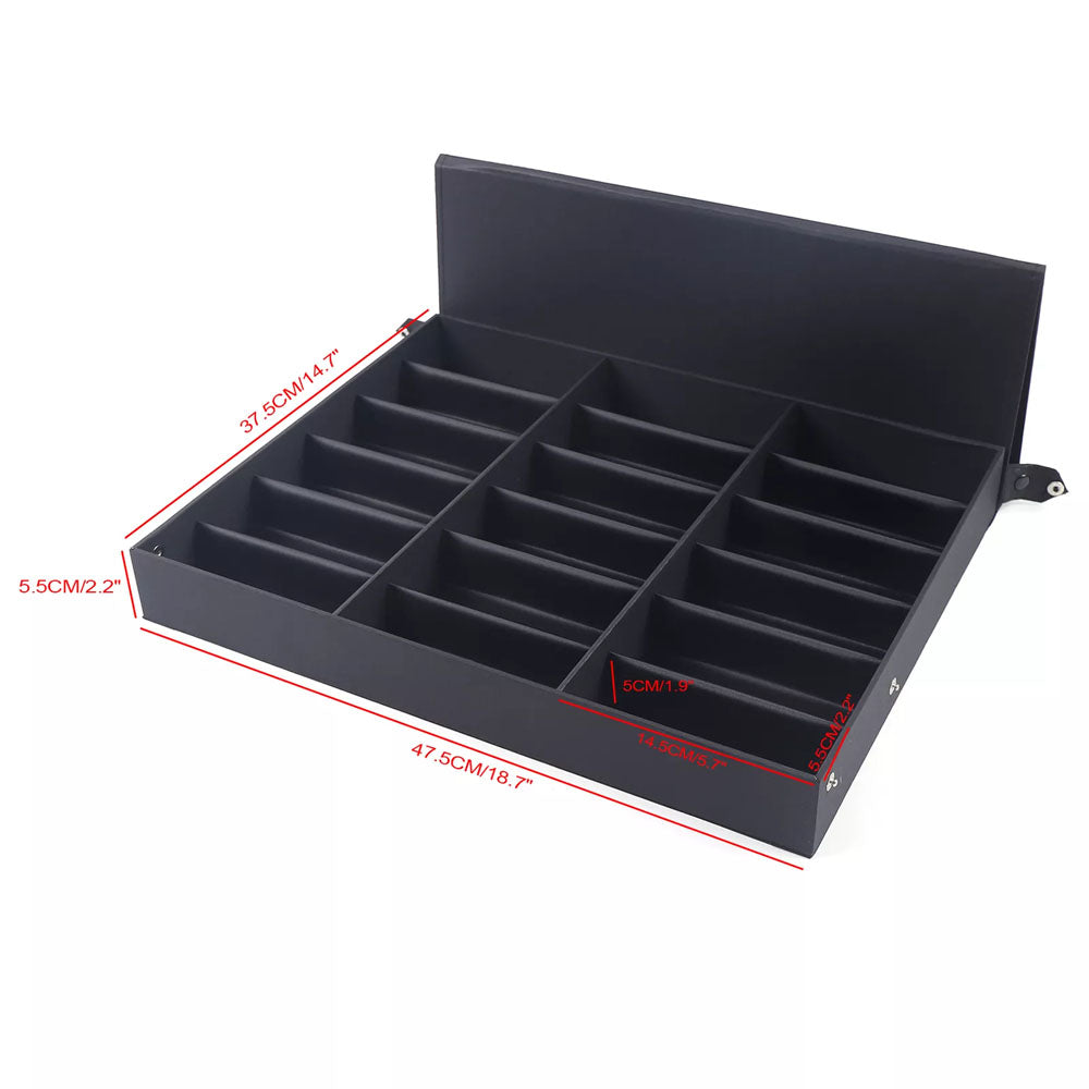 • Efficient Storage: 18 individual compartments to organize various styles of glasses or sunglasses.