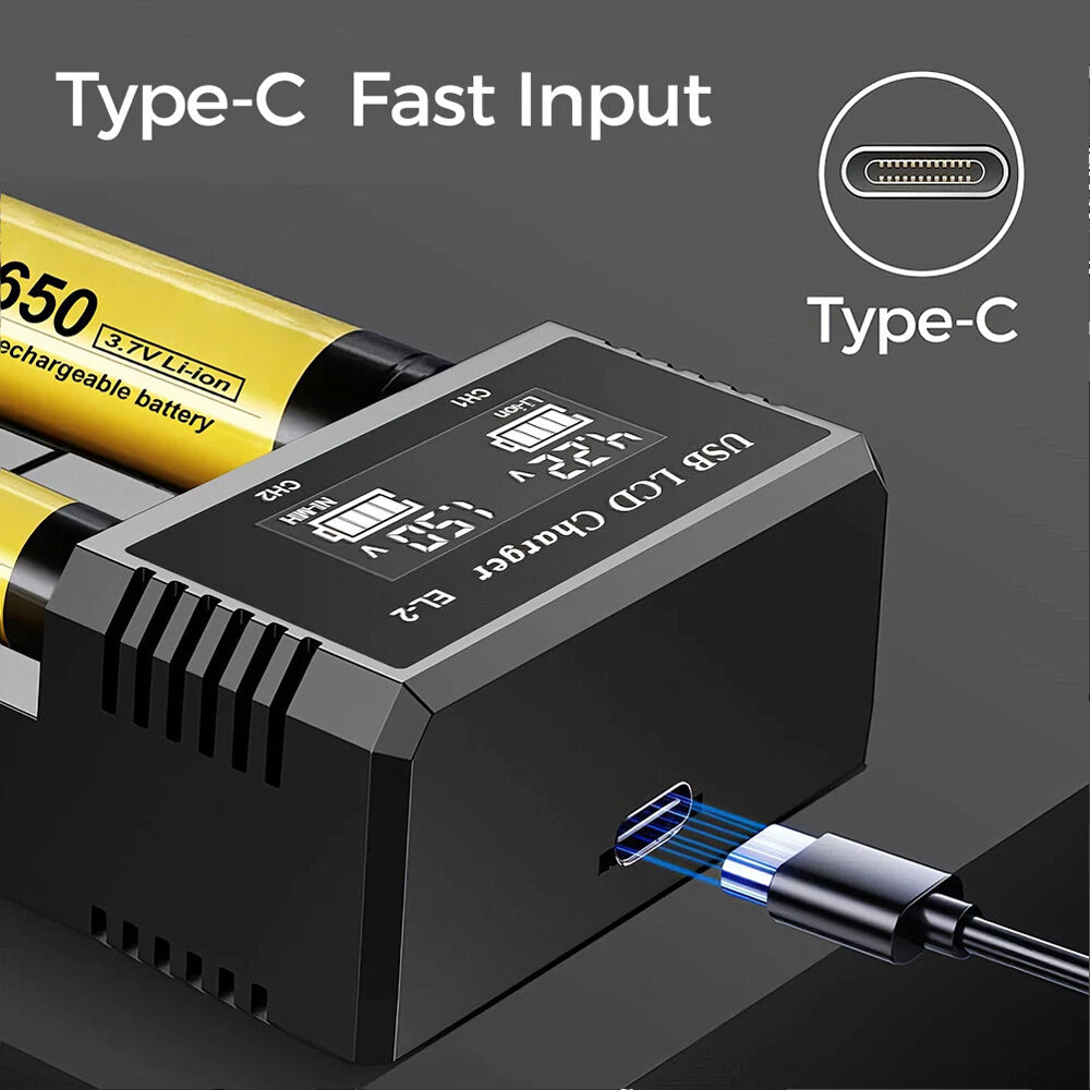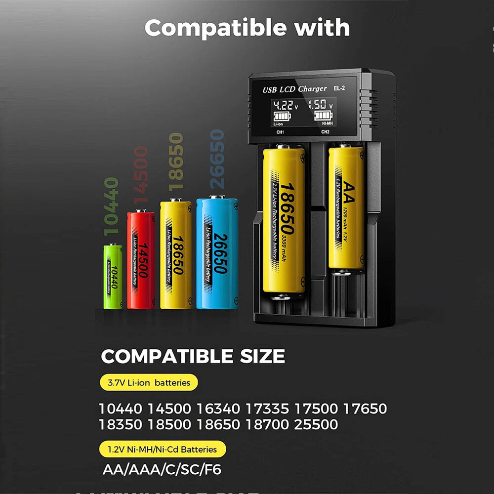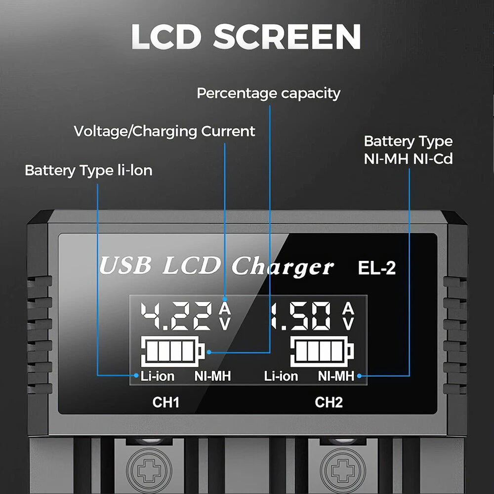 18650 Battery Charger 2 Bay Battery Charger LCD Display For Rechargeable Battery