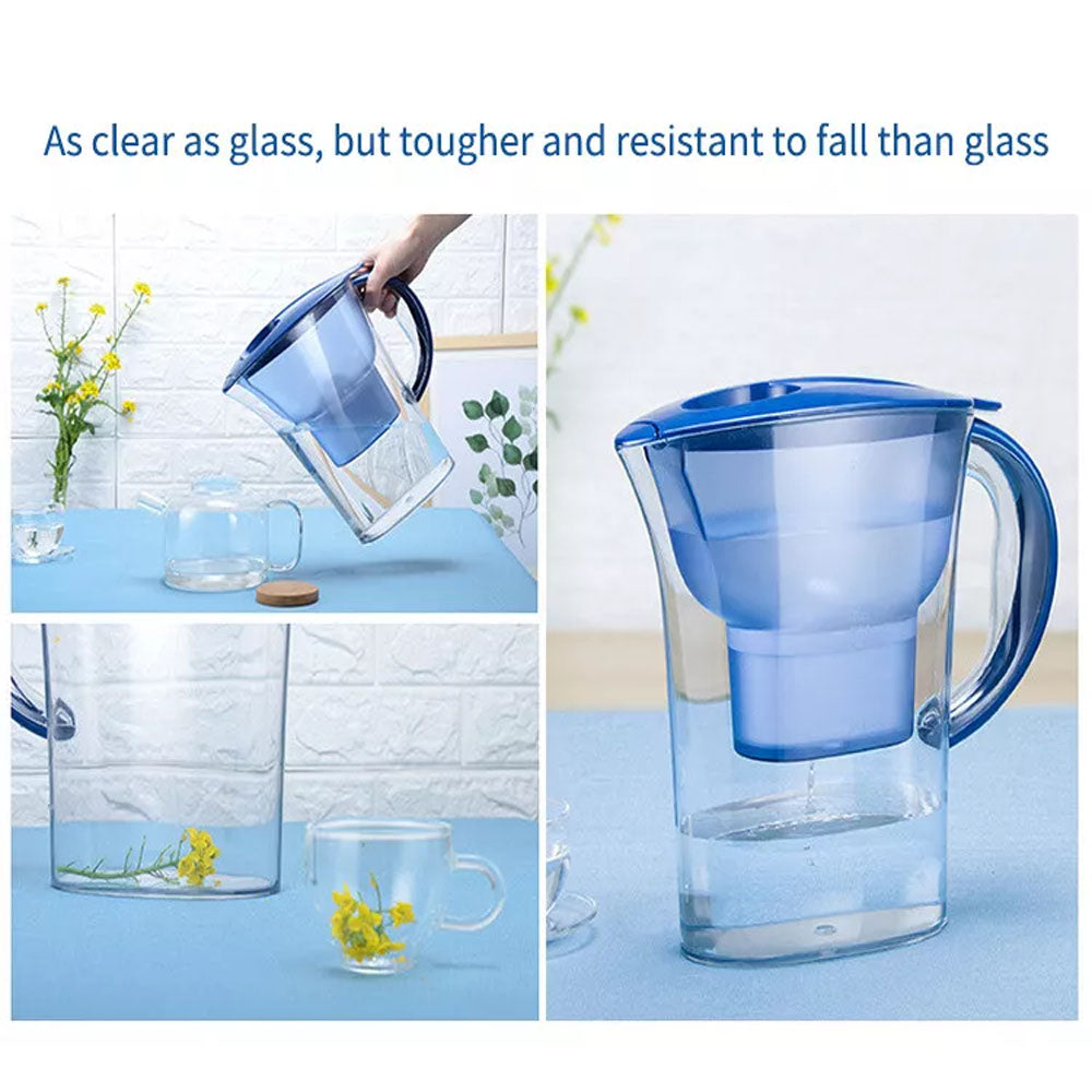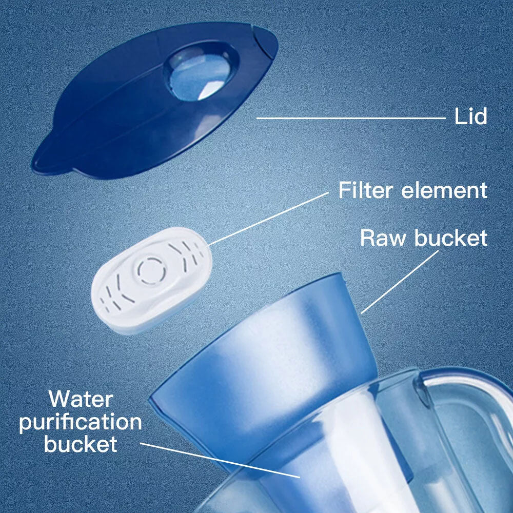 Enjoy cleaner, better-tasting water with our 2.5L Water Purifying Jug. This jug comes equipped with a high-performance carbon/charcoal filter cartridge that removes up to 95% of harmful toxins, including chlorine, scale, heavy metals, and other impurities. Ideal for household and kitchen use, the jug helps reduce chlorine taste and odor, providing pure, fresh water with every pour.
