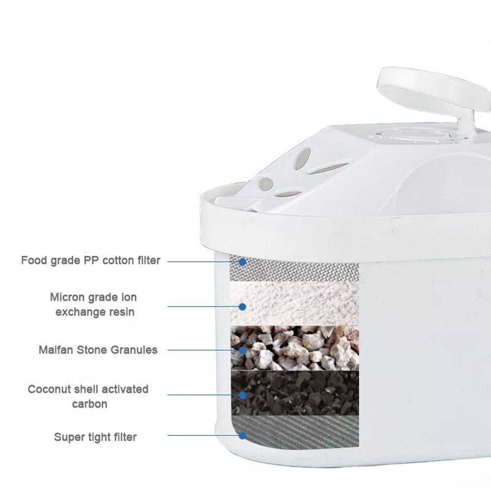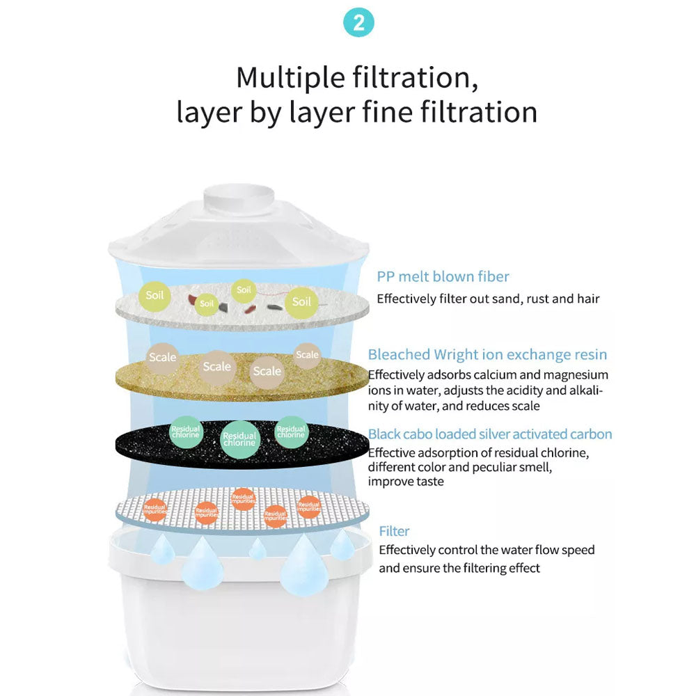Made from food-grade materials that are BPA-free and environmentally friendly, this jug ensures safe drinking water for you and your family. The smart filter lifespan indicator lets you easily track when it's time to replace the filter, extending the filter’s life from 4 to 6 weeks. The jug features an innovative design that allows you to pour water without lifting the lid, making it user-friendly and practical for daily use.