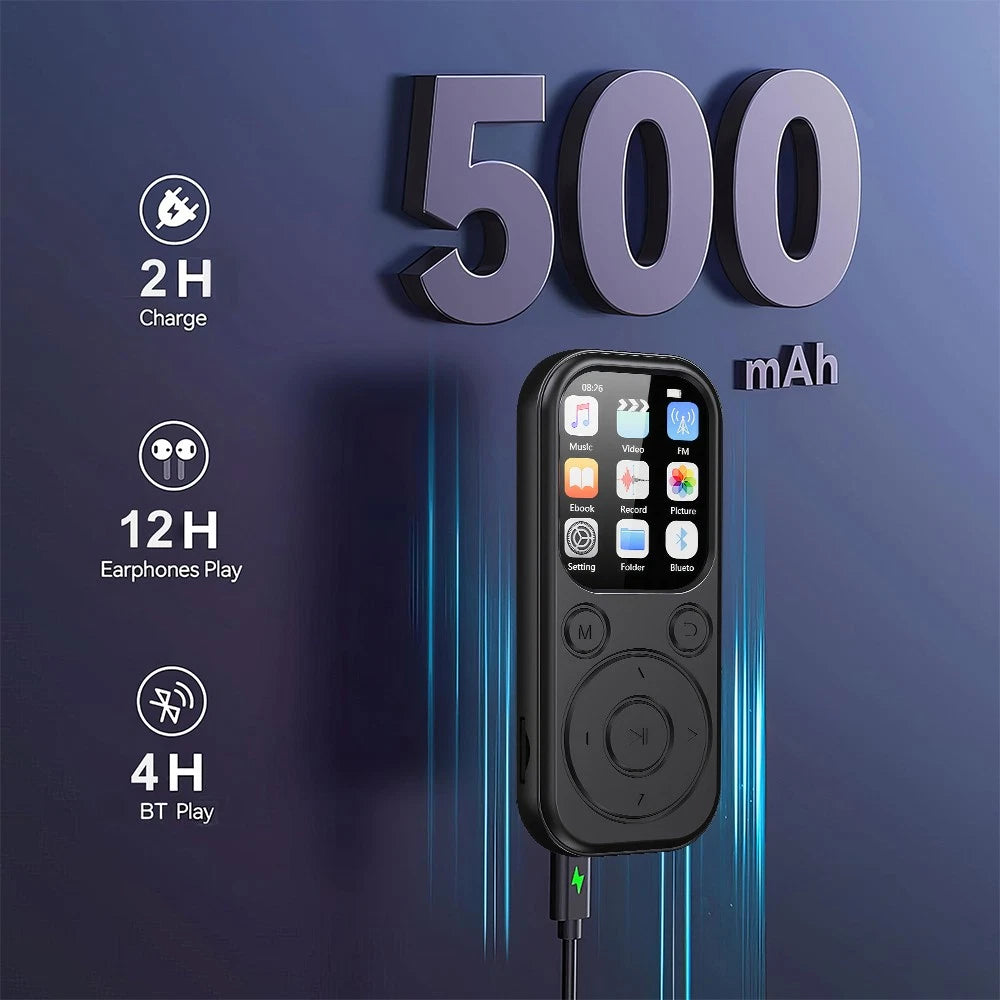 - Large Capacity Battery: Equipped with a 500mAh lithium-ion battery and Type-C fast charging. Just 2 hours of charging provides up to 12 hours of continuous music playback (when using wired headphones with the screen off).