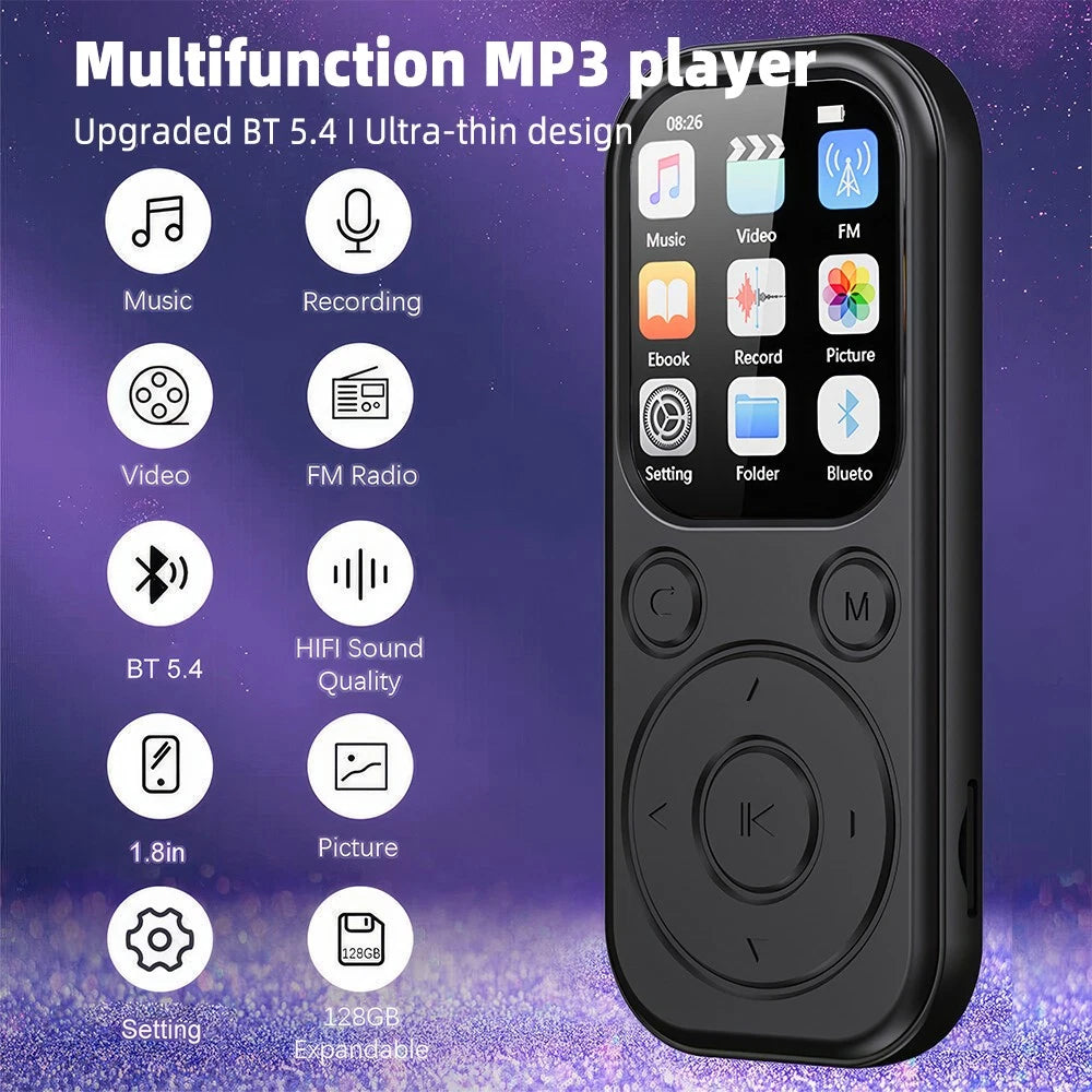 This MP3 Bluetooth Player is a compact powerhouse that combines lossless music playback with a host of practical functions. Boasting a 2-inch high-definition IPS color screen, it offers a clear and comfortable visual experience for browsing songs, videos, and e-books. Equipped with the latest Bluetooth 5.4 technology, it ensures a stable wireless connection to your favorite headphones or speakers. With support for multiple audio formats, including MP3, WMA, APE, FLAC, and WAV, you can enjoy high-fidelity sound that stays true to the original recording. The player also features expandable memory up to 128GB, allowing you to store thousands of songs and files. Its 500mAh large-capacity battery with Type-C fast charging provides up to 12 hours of uninterrupted music, making it the perfect companion for travel, workouts, and everyday use.