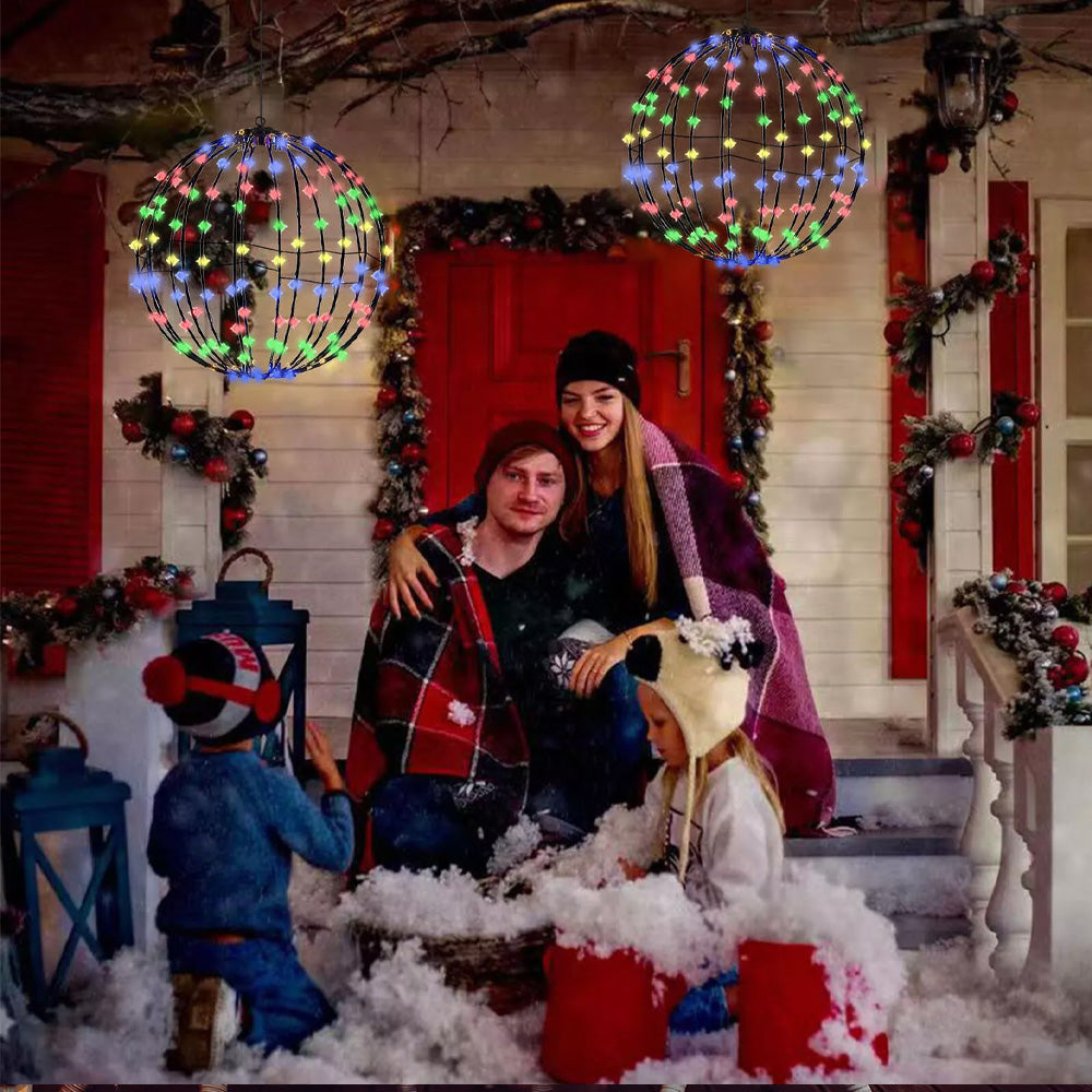 25*25 Colored Lights Christmas Foldable Metal Hanging Sphere Lights Outdoor Display Ball Lights