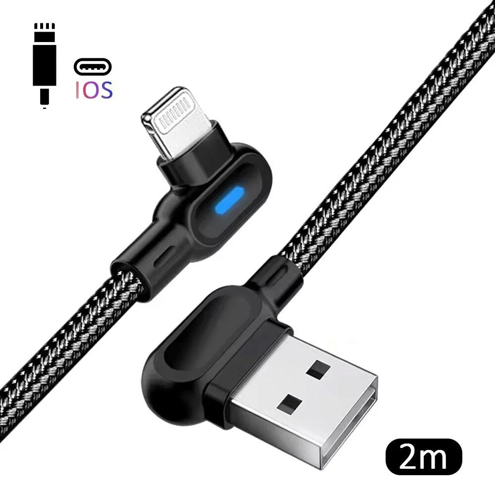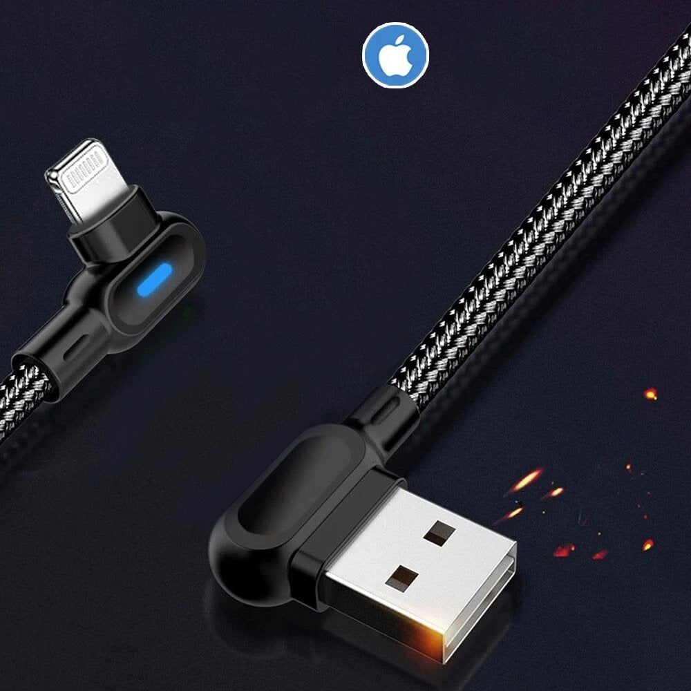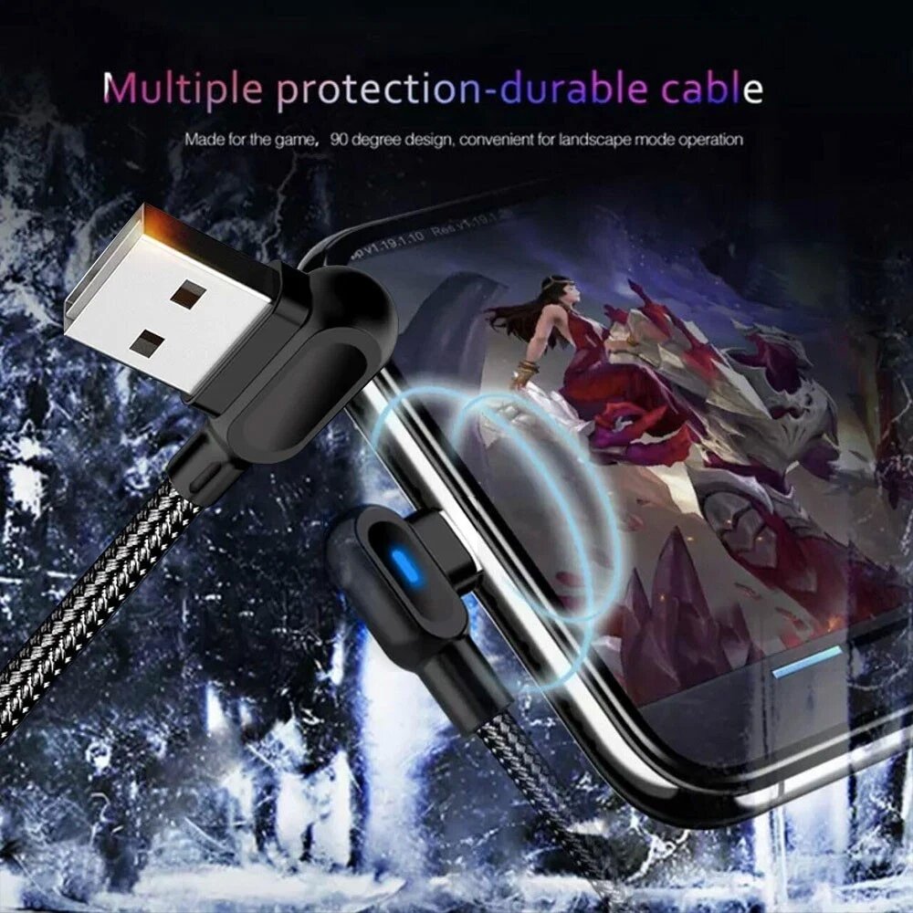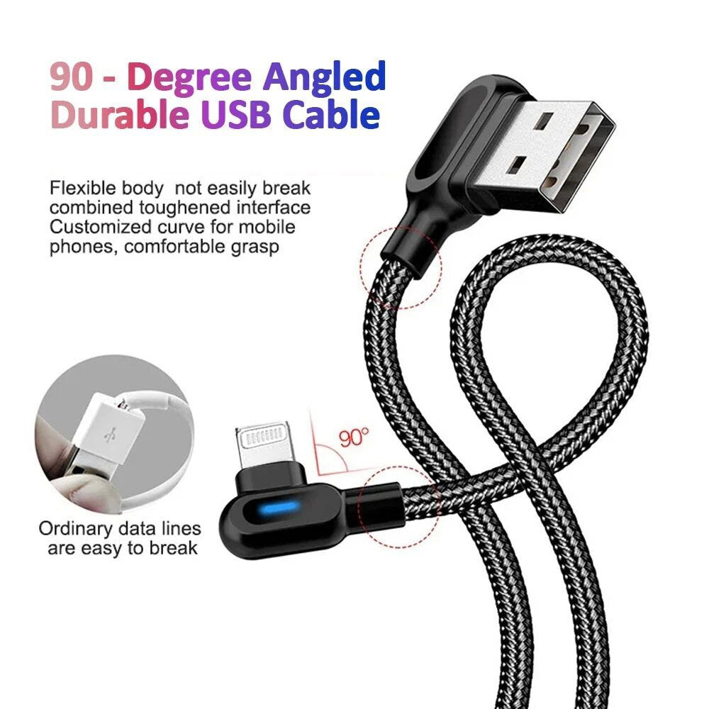 90 Degree Angle L Shape Fast USB Charging Cable Charger Cord Samsung IOS Braided