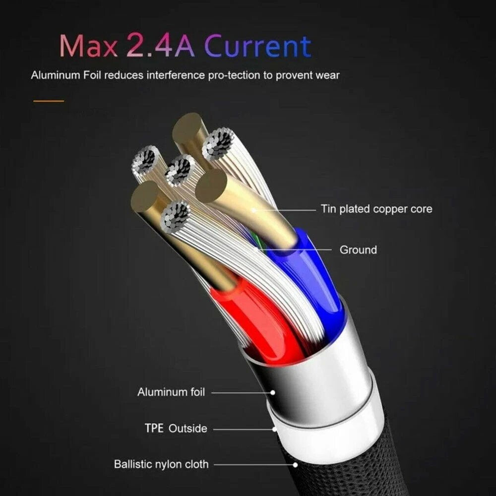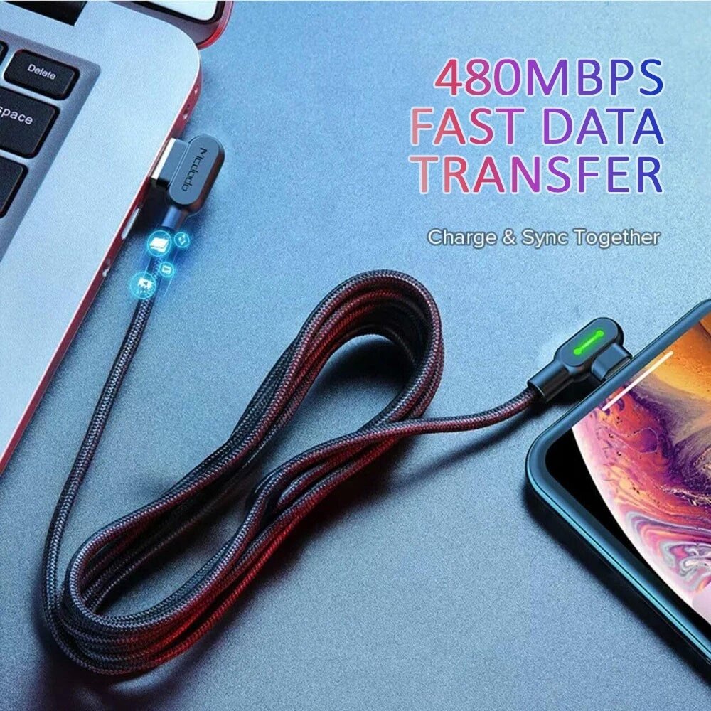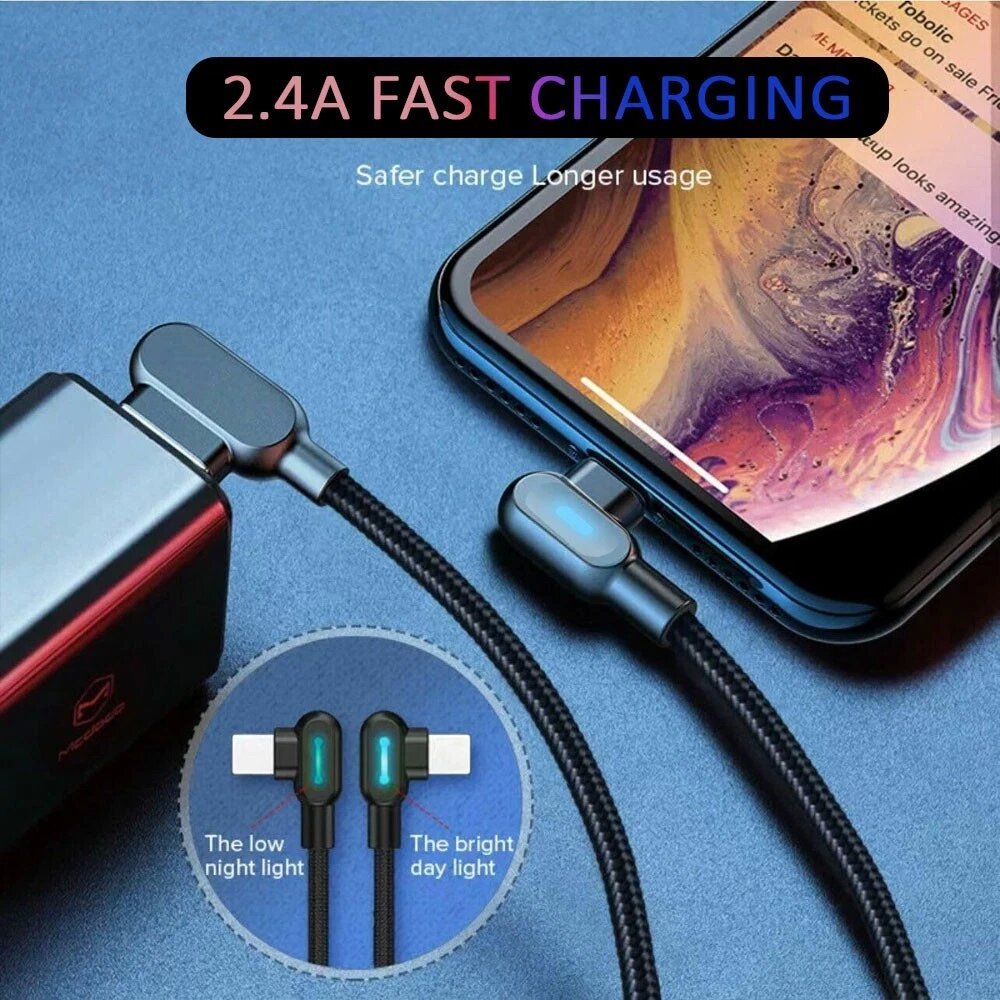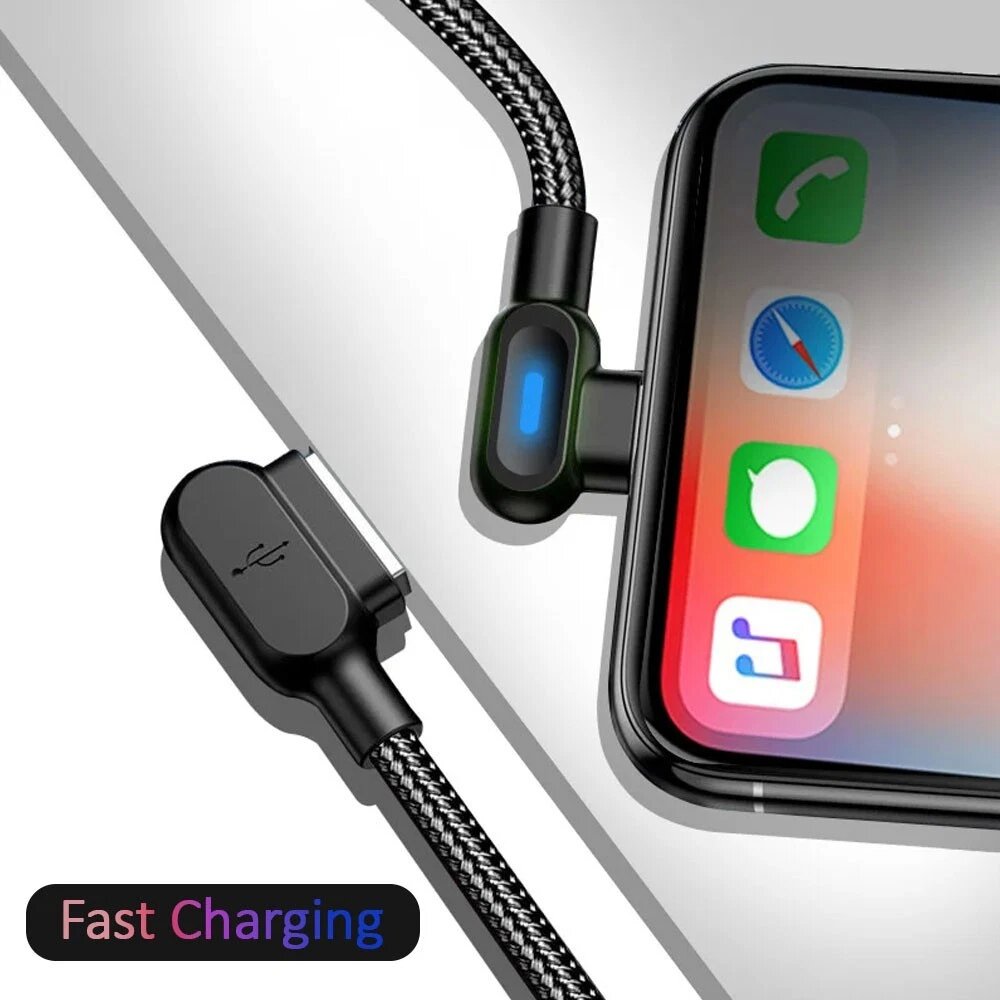 90 Degree Angle L Shape Fast USB Charging Cable Charger Cord Samsung IOS Braided