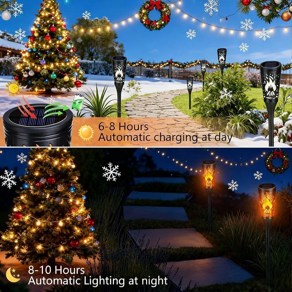- Dancing Flickering Flames: The special design of these solar torch lights creates beautiful dancing flickering flames, mimicking the look of real flames without any of the risks associated with open fire. It's a safe way to enjoy the warm and inviting glow of flames outdoors.