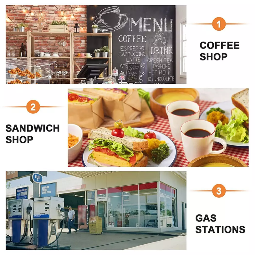 • Food-Grade FDA Approved Acrylic: Safe and non-toxic material ensures the safety of your displayed goods.