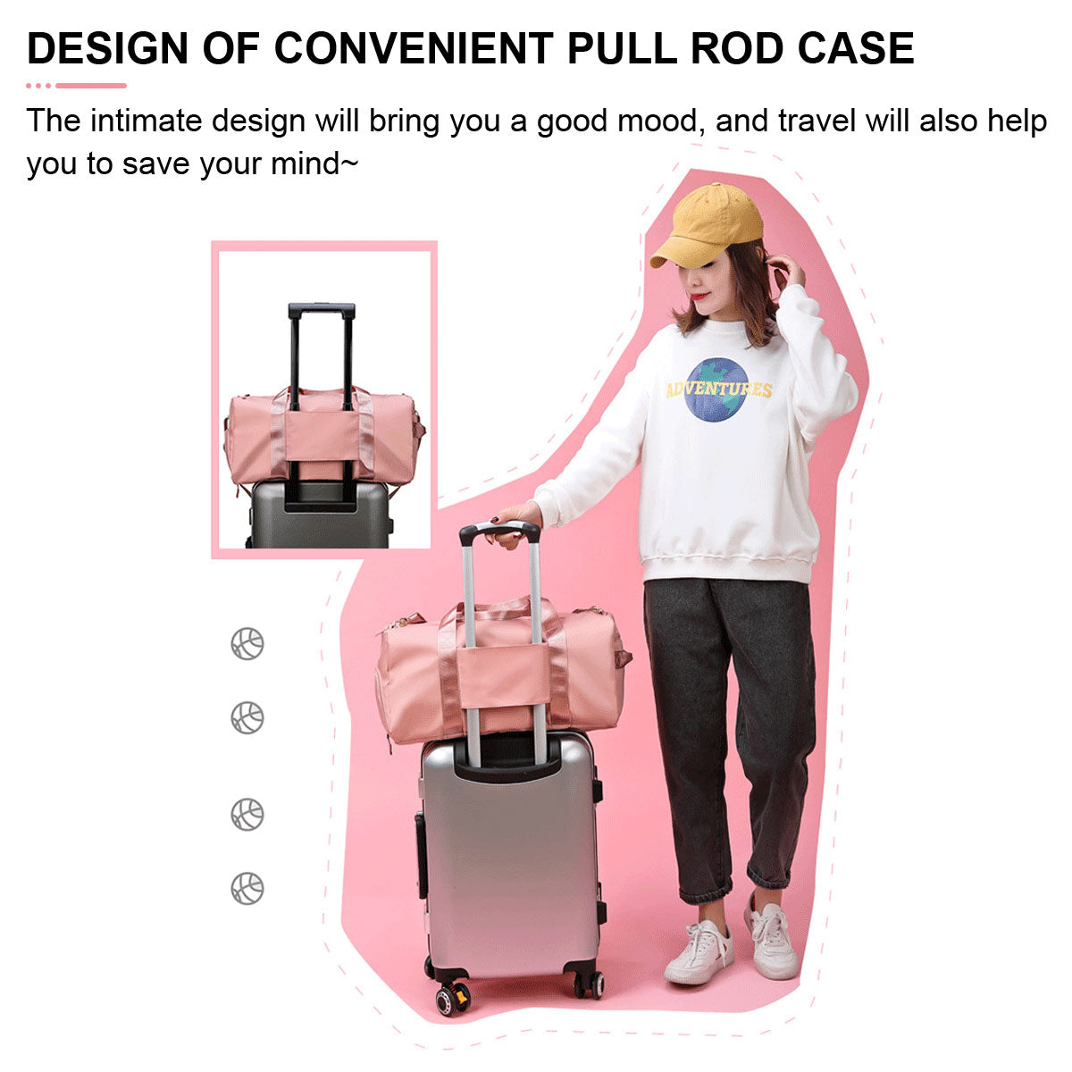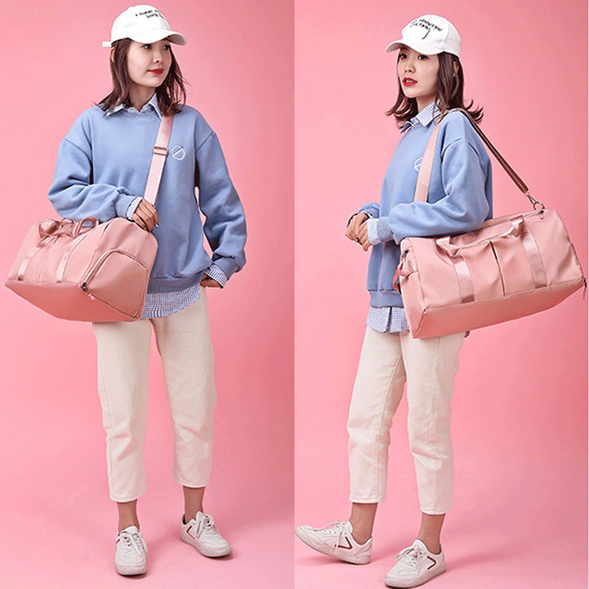 30L Gym Duffel Bags Large Travel Bag Waterproof Fitness Shoes Compartment Pink