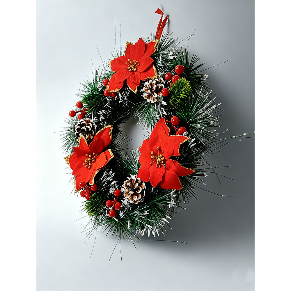 31cm 12" Christmas Wreath Door Garland w Pinecone Red Berry Xmas Wall Tree Décor Red Flowers