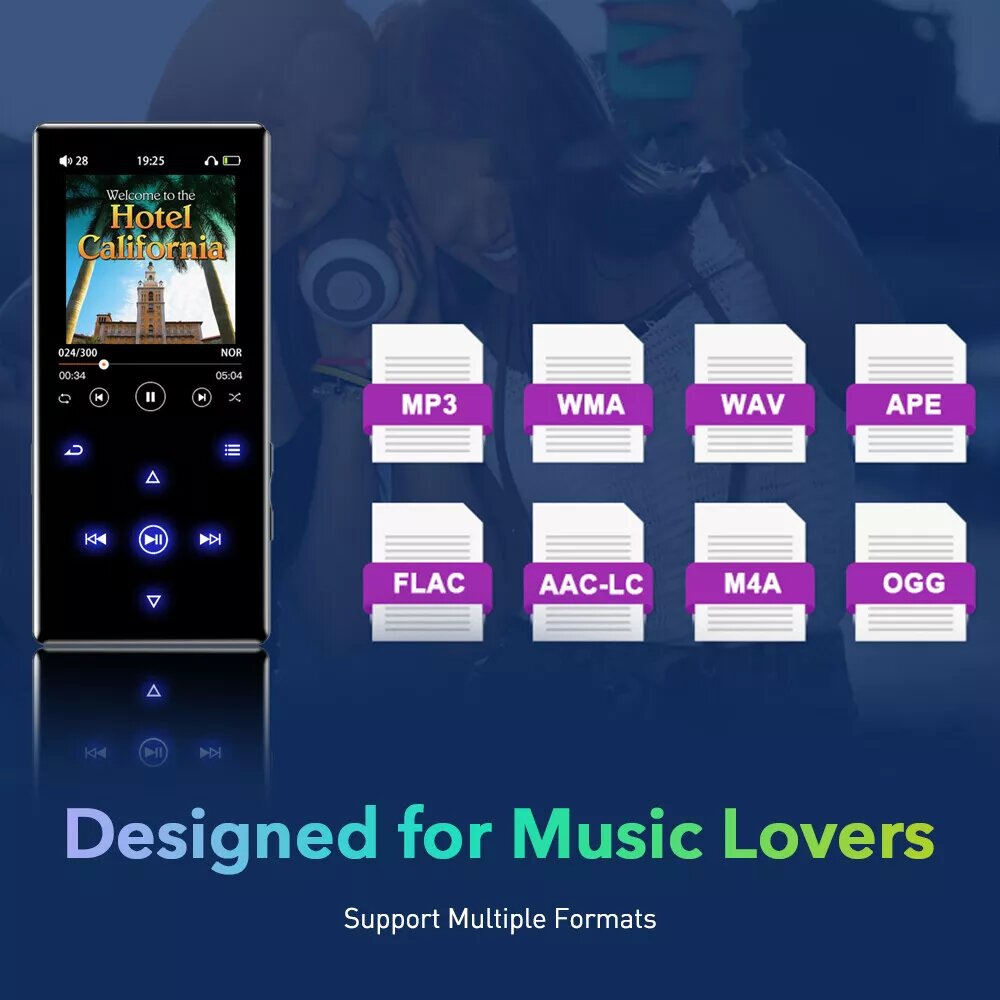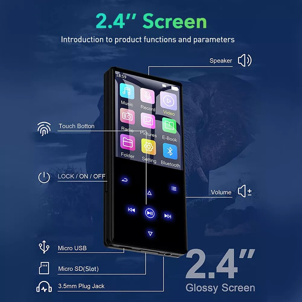 The Bluetooth 5.0 MP3 Music Player offers a compact yet powerful experience, providing high-resolution lossless music through its advanced DSP technology. With Bluetooth connectivity, you can easily pair it with Bluetooth speakers or earphones for wireless listening. Its multi-functional features, including voice recording, video playback, FM radio, and more, make it a versatile companion for all your entertainment and practical needs. Enjoy music, audiobooks, podcasts, and other media on the go with this portable and feature-packed device.