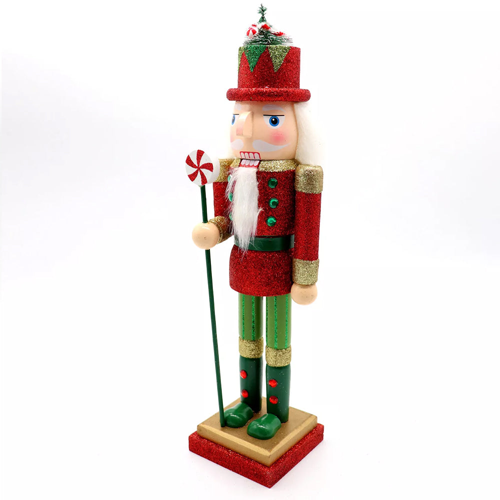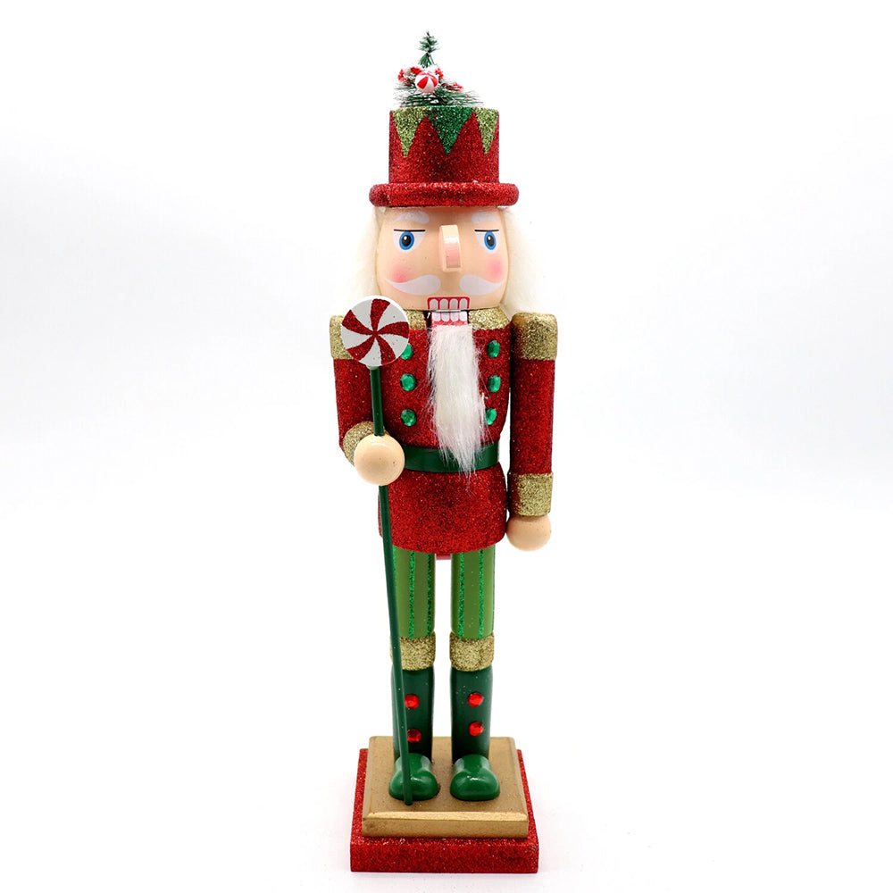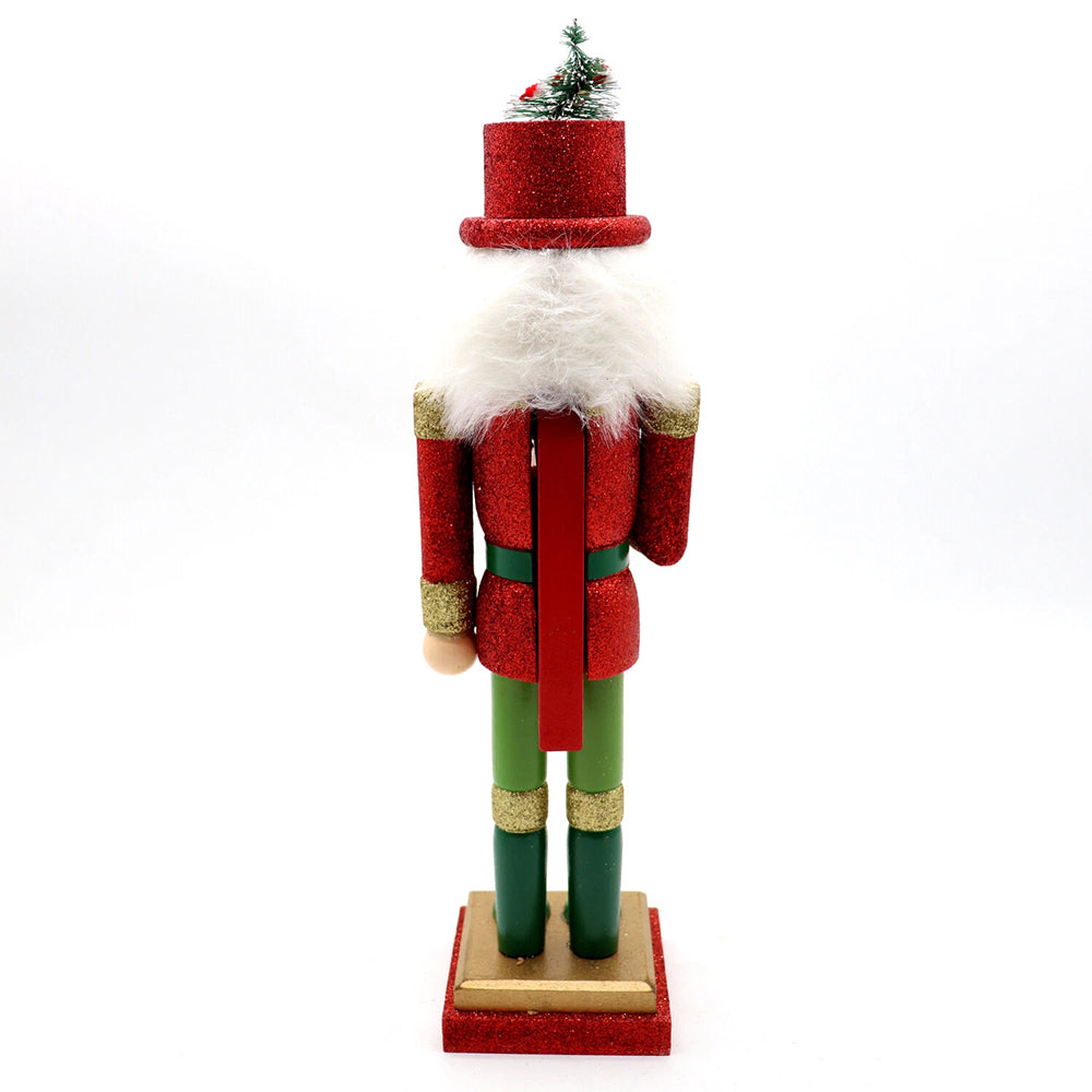 38cm 15" Christmas Wooden Nutcracker Soldier Puppet Guard Statue Xmas Ornament Soldier w Christmas Tree Hat