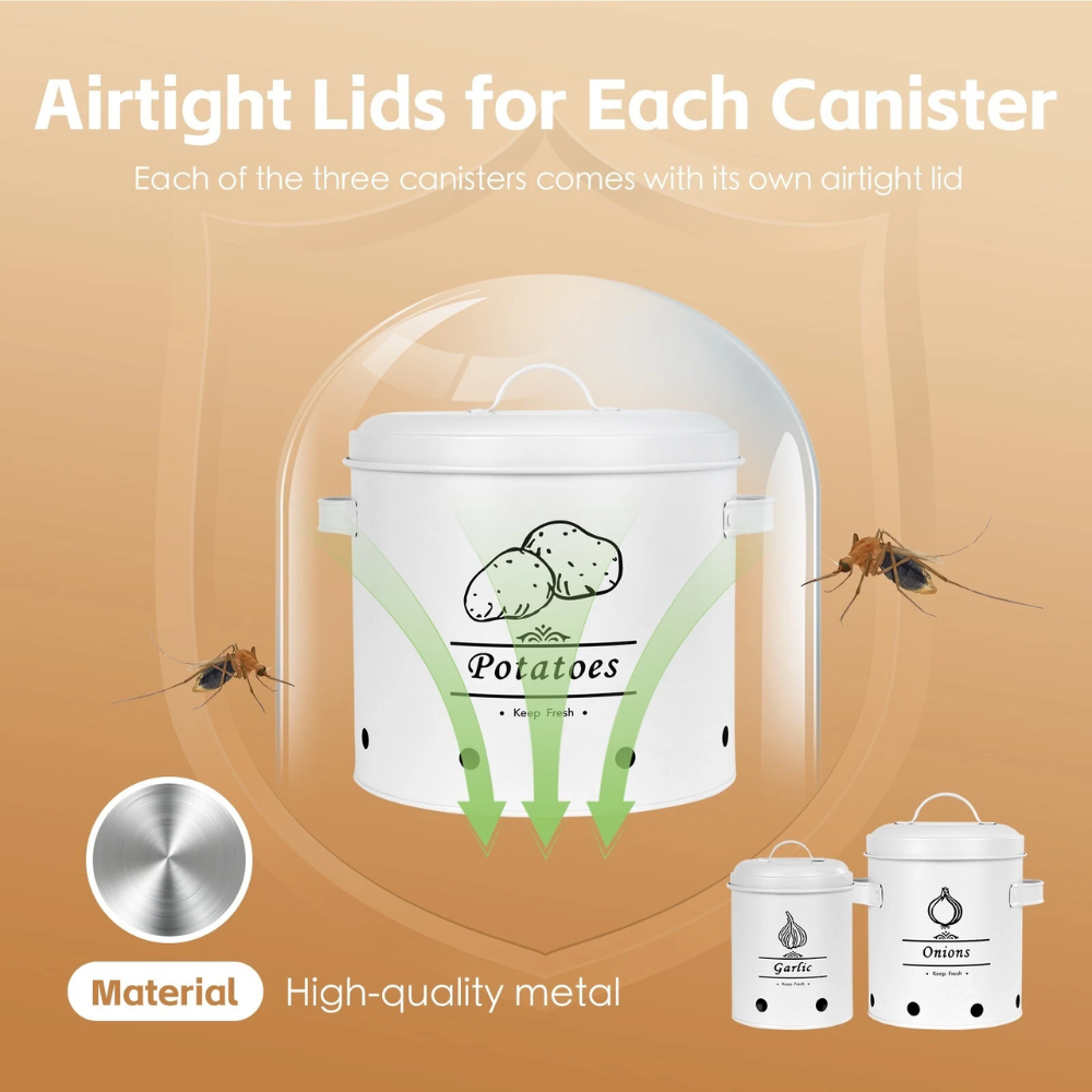 3Pcs Potatoes Onions Garlic Bin Vegetable Rack Storage Tins Breathable Fruit