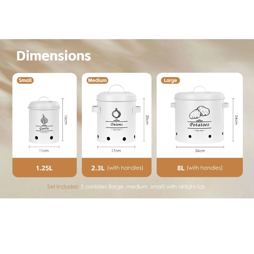 • Set of 3 Sizes: Large, Medium, and Small tins to organize different vegetables like potatoes, onions, garlic, and more