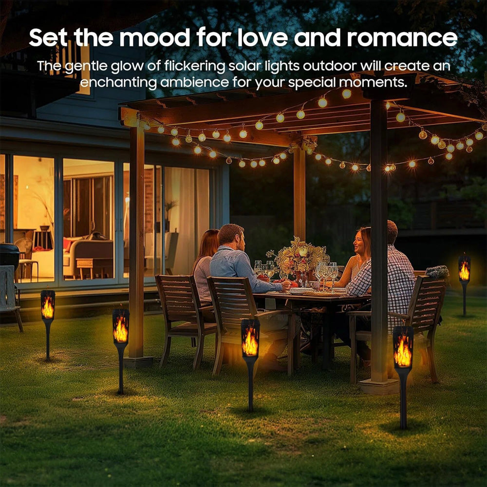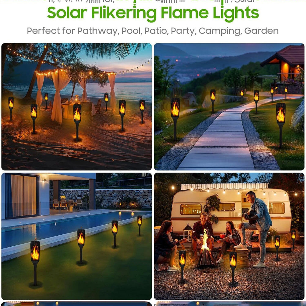 • Dancing Flickering Flames: The special design of these solar torch lights creates beautiful dancing flickering flames, mimicking the look of real flames without any of the risks associated with open fire. It's a safe way to enjoy the warm and inviting glow of flames outdoors.