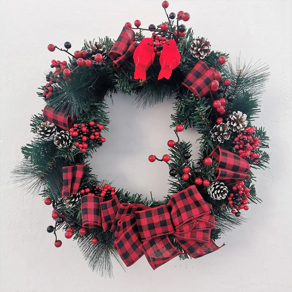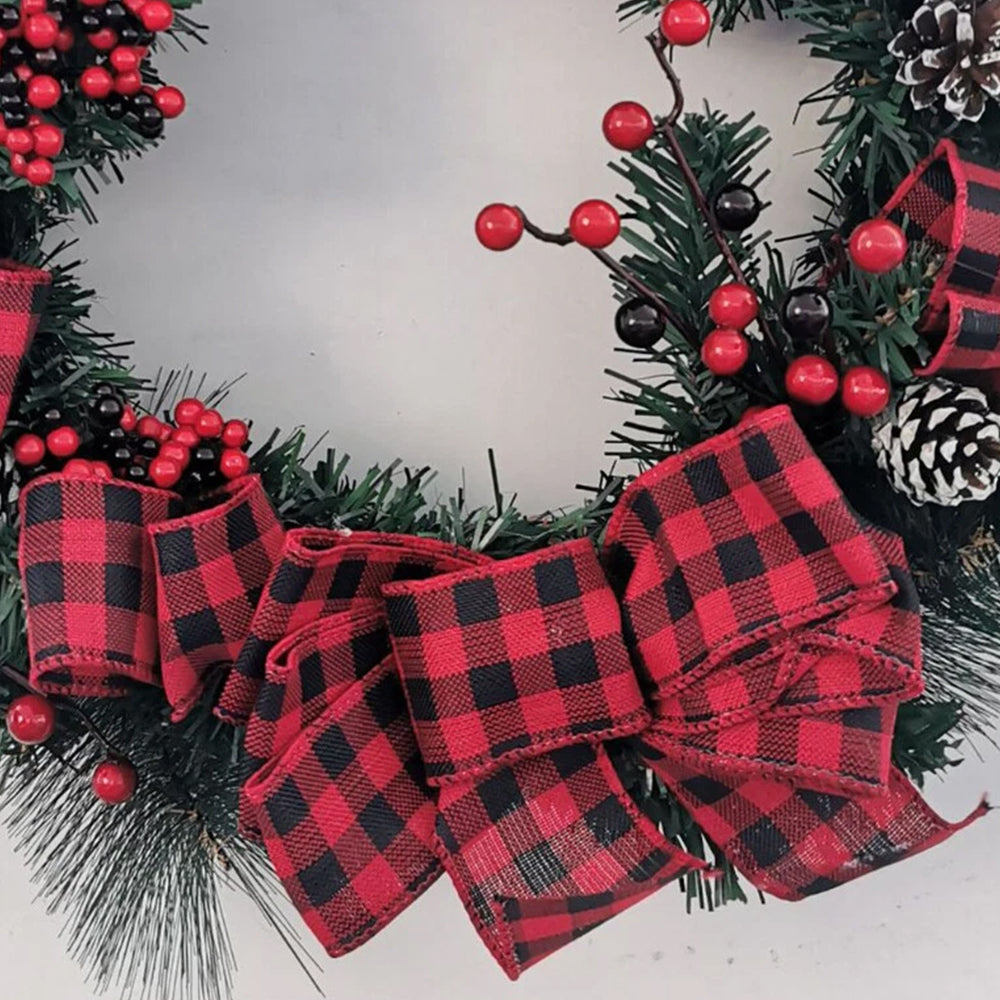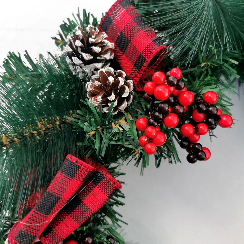 • Traditional Christmas Elements: Beautifully adorned with classic red berries, natural-looking pinecones, and timeless plaid bows for an authentic holiday feel.