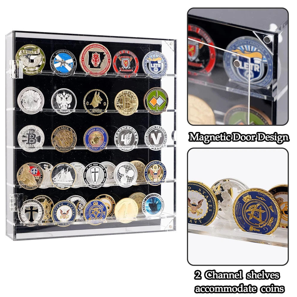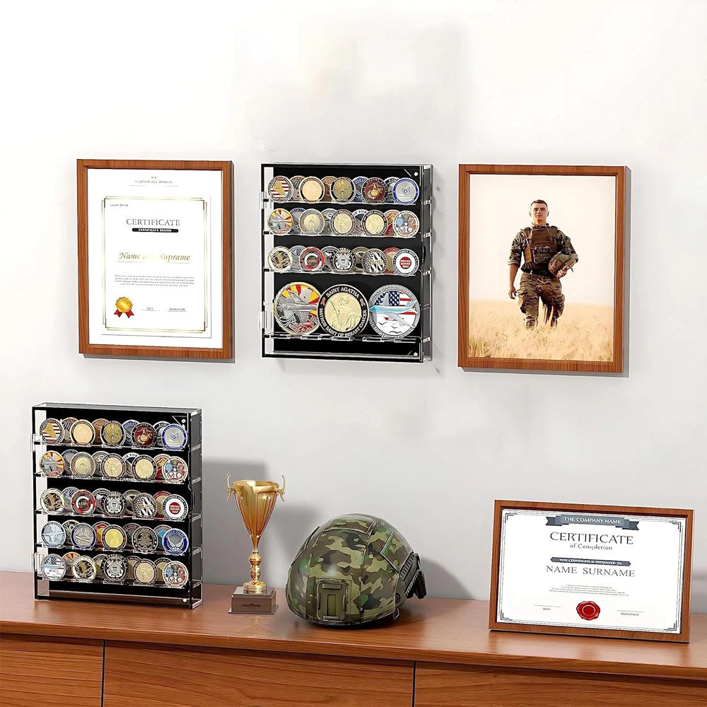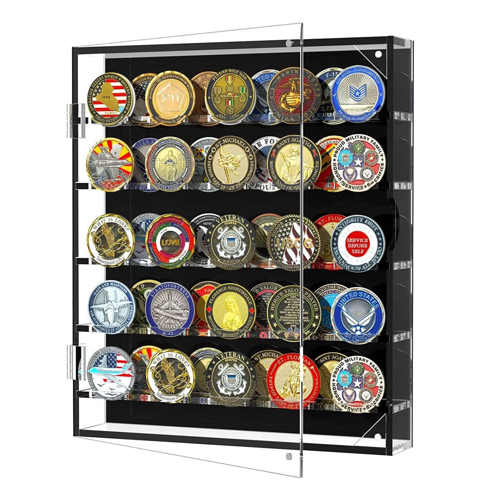 45 Grids Acrylic Clear Coin Medals Holder Military Challenge Coin Display Case
