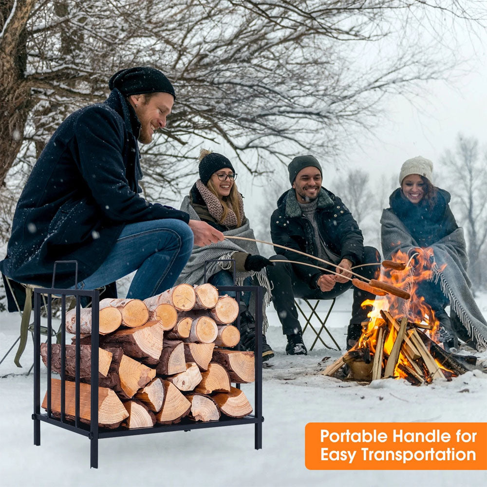 46CM Firewood Rack Decorative Steel Firewood Storage Log Holder with Handle