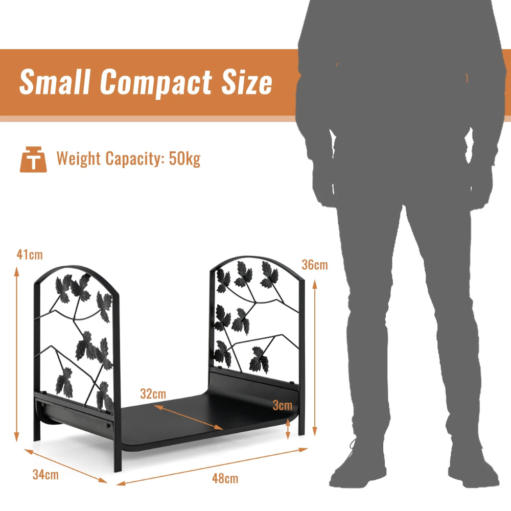 48CM Firewood Rack Leaf Patterns Decorative Firewood Storage Holder Indoor