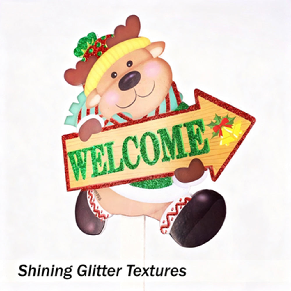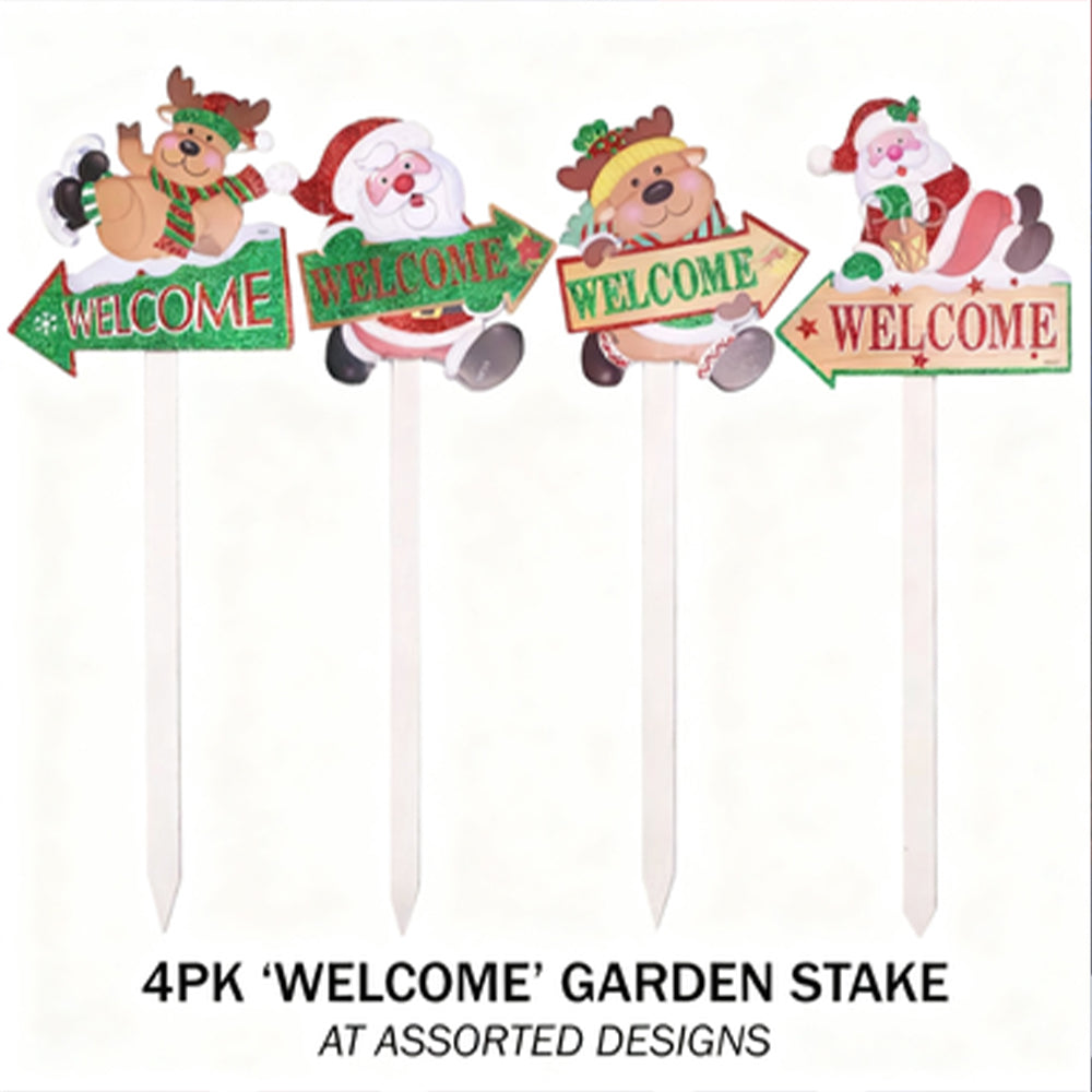 4PCS Christmas Decor Glitter Santa Reindeer Yard Garden Signs Stakes Lawn Ornaments