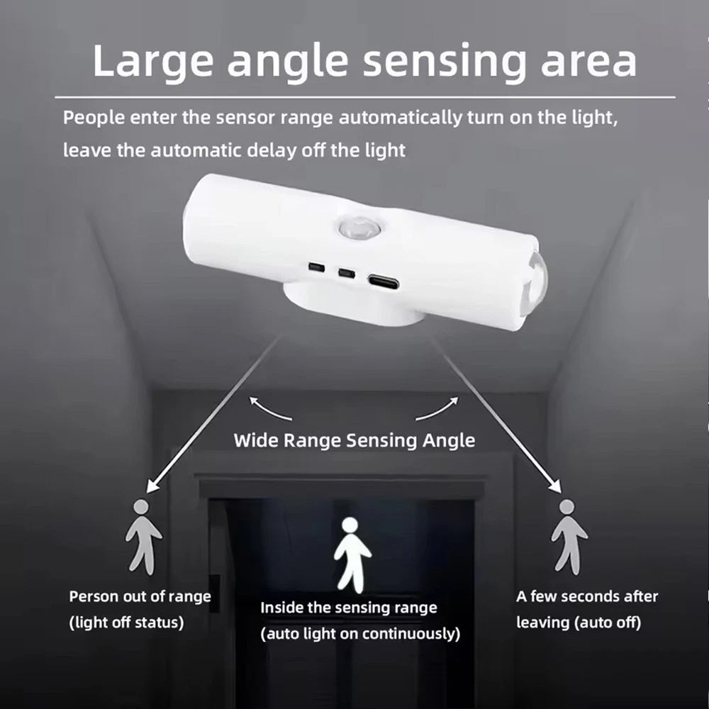 • Triple sensing system (human detection, light control, motion sensitivity) with 120° detection angle and 3-5ft range for full space coverage.
