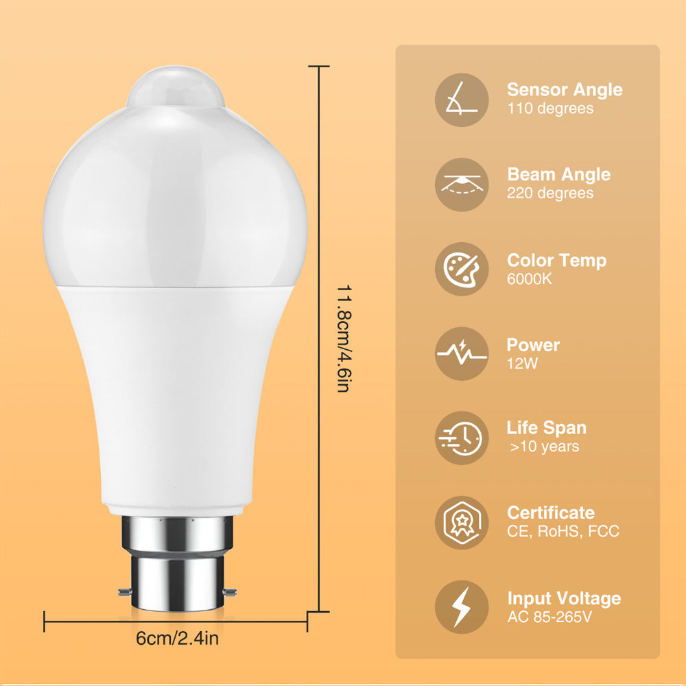 Experience the convenience and efficiency of this 12W Motion Sensor B22 LED Bulb, designed with built-in PIR and light sensors... Read more