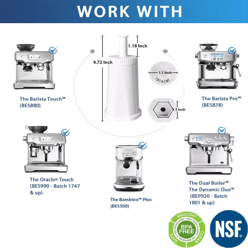 Keep your Breville or Sage espresso machine performing at its best with these premium replacement water filters. Designed with food-safe, BPA-free materials, ion exchange resin, and activated carbon, the filters effectively reduce chlorine, odors, limescale, and harmful minerals while preserving the natural coffee aroma. By preventing scale buildup, these filters not only enhance the taste and texture of your coffee but also extend the life of your machine. Easy to install and replace, they ensure clean, fresh water every time you brew.