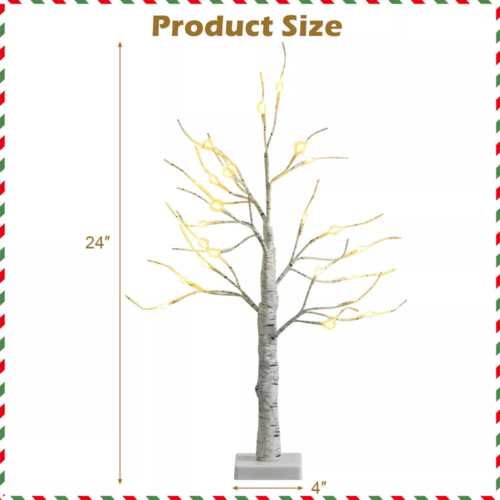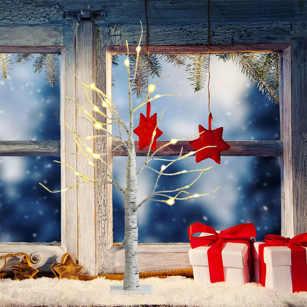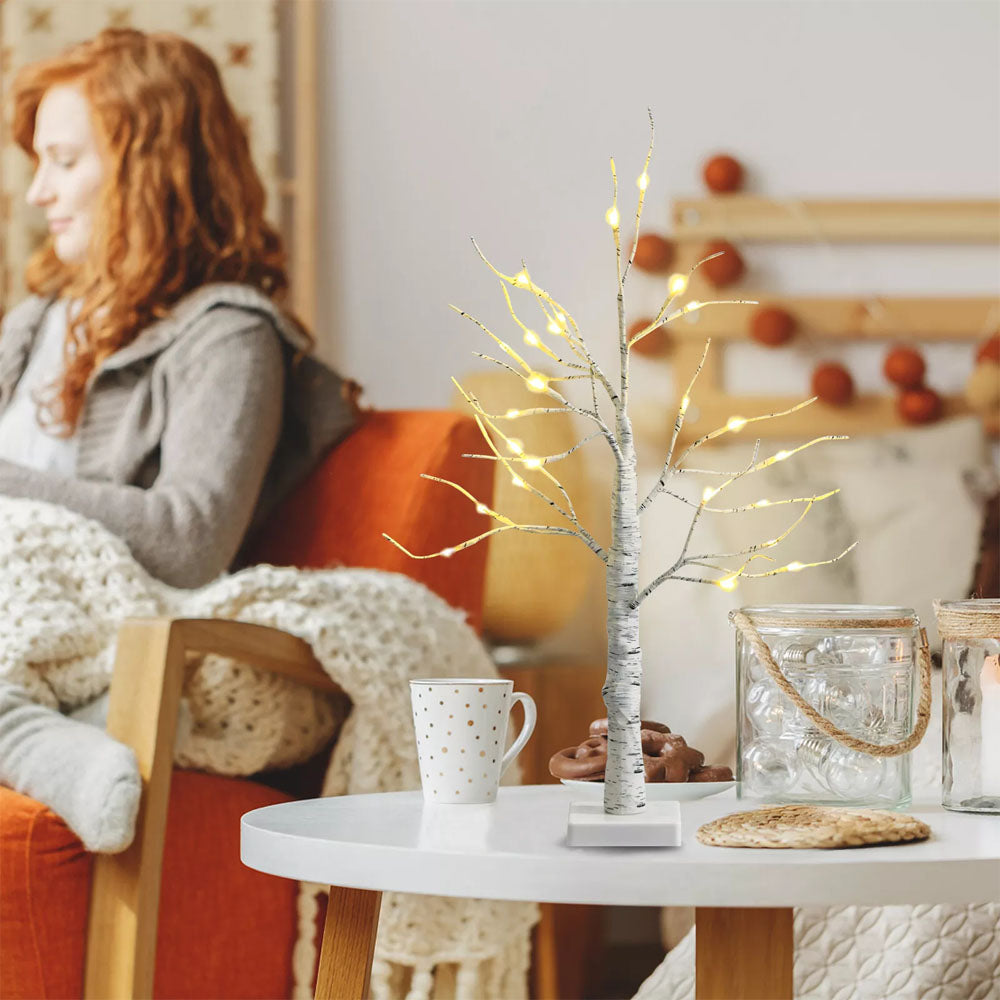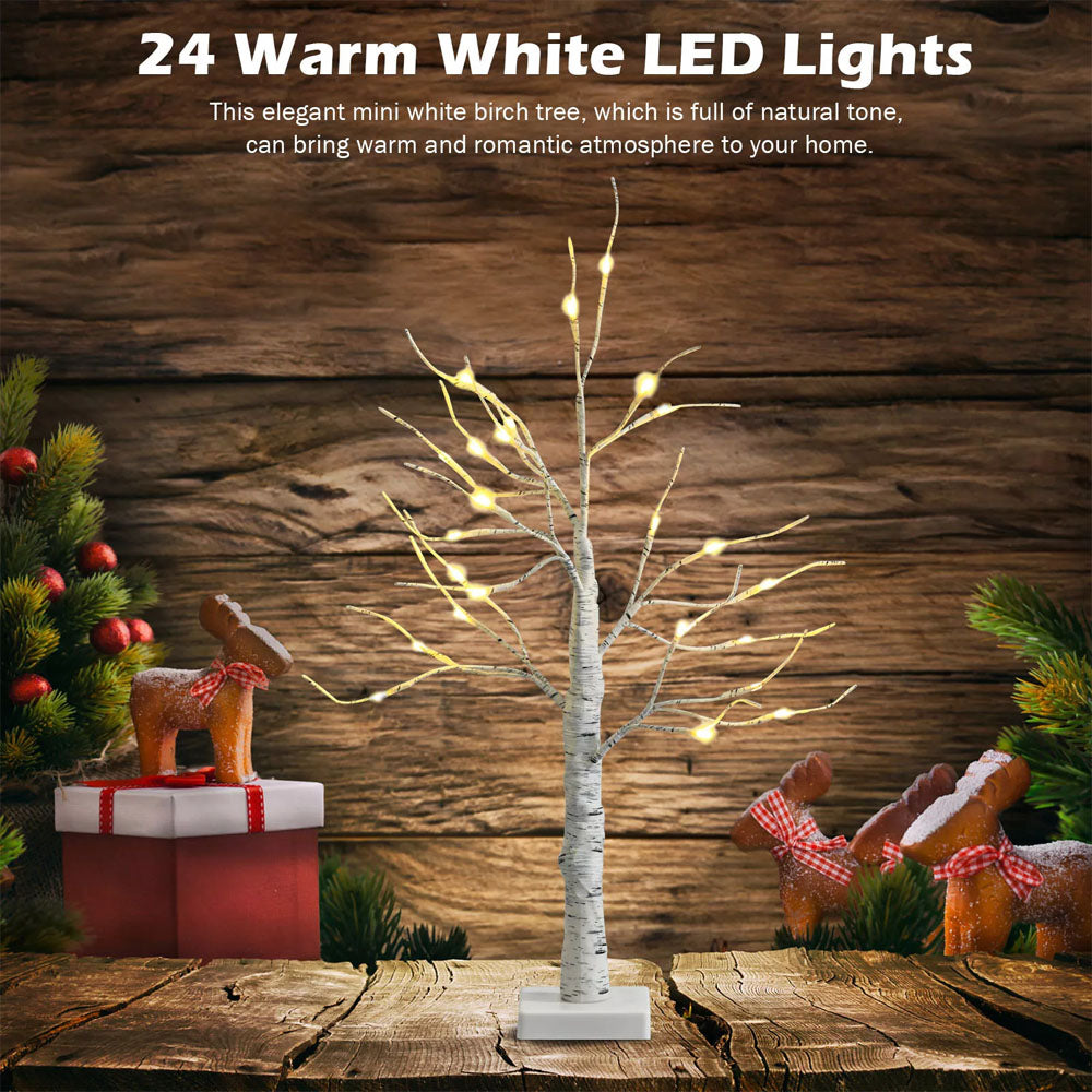60cm Christmas Birch Twig Tree Tabletop Tree 24 Warm White LED Light Home Decor