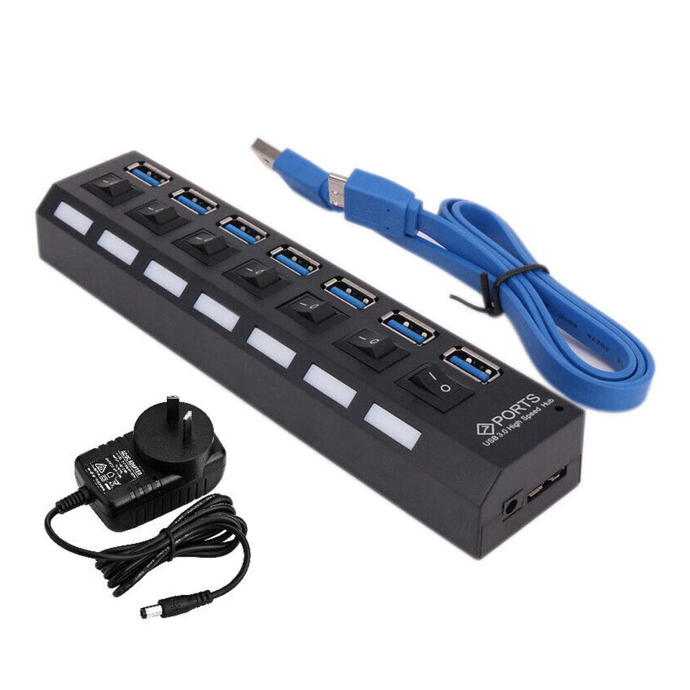 7 Ports USB 3.0 HUB Powered High Speed Splitter Extender with Power Supply