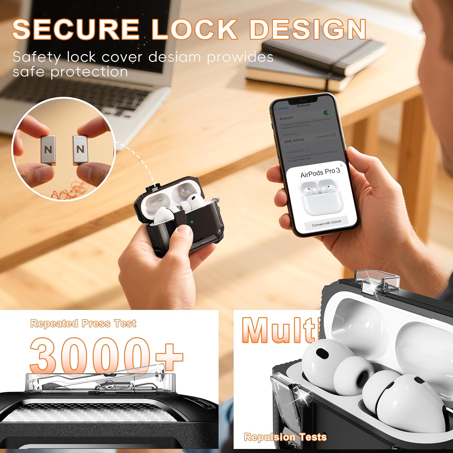 Apple Airpods Pro 3 (2025) Case Cover Heavey Duty Shockproof Protector Black