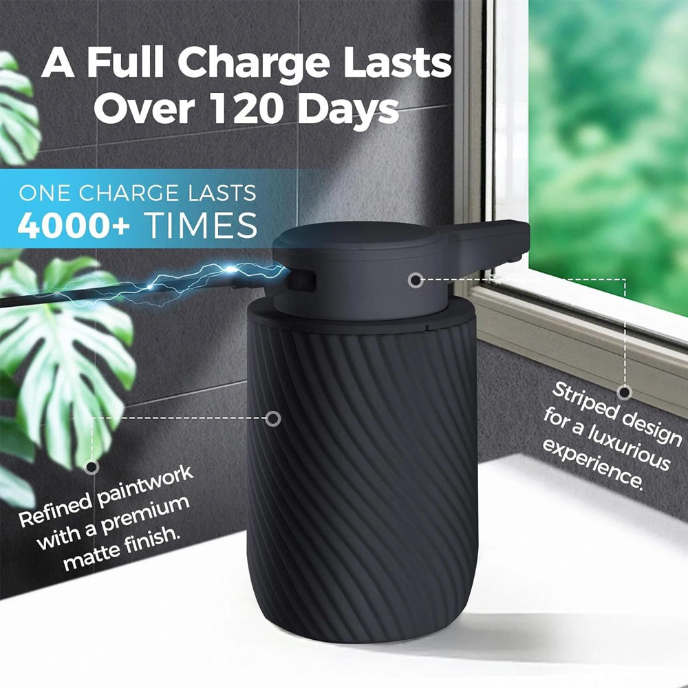 Elevate your daily cleaning routine with this elegant Automatic Touchless Foaming/Liquid Soap Dispenser—perfect for adding both style and convenience to your bathroom, kitchen, or commercial space! Crafted with a durable PP body in a classic black color and sleek stripes, it seamlessly blends simplicity and sophistication, making it a decorative yet practical addition to any countertop. Designed to be smart without being complicated, it features just one button for on/off control—no complex functions, just a single setting that meets all your soap-dispensing needs. With a 260ml/8.7oz capacity and an open bottle mouth design, refilling is easy and spill-free: you can add foam soap directly or dilute gel/liquid soap with 3-4 times water to create perfect foam. Powered by a built-in 1800mAh rechargeable battery, it runs up to 100 days on a single charge, and the USB port’s waterproof plug ensures protection against water damage. Whether for handwashing at the sink, dishwashing in the kitchen, or dispensing shower gel/shampoo during bathing, this touchless dispenser keeps your space clean, reduces contact with germs, and makes every cleaning moment more enjoyable.