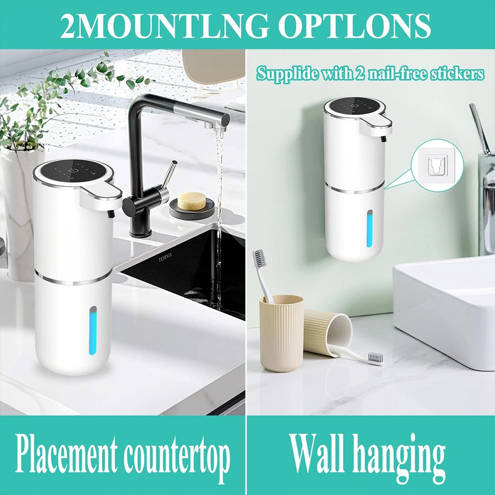 - Features: Smart Touchless, 4 Adjustable Soap Levels, Wall Mount & Tabletop Design, USB-C Rechargeable, Waterproof